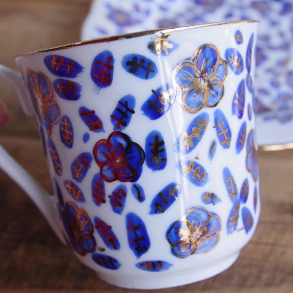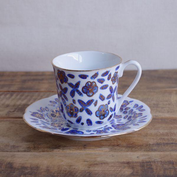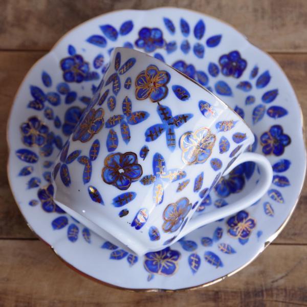 イラン製 アルボルツ コーヒーカップ ソーサー コバルトブルー ゴールド 花柄 #230206-3 カップ&ソーサー デュオ 手描き ティーカップ