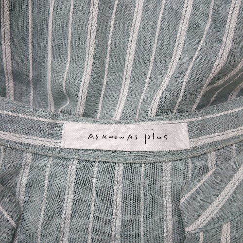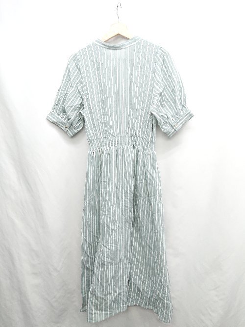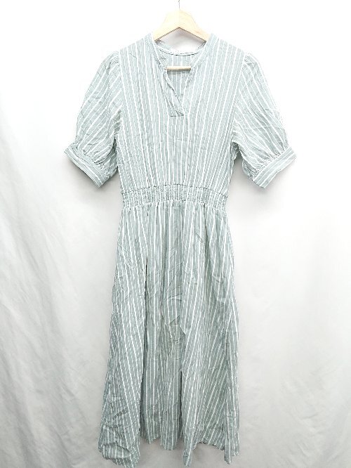 ◇ ⊂ AS KNOW AS PLUS アズノゥアズプラス ストライプ 半袖 膝下丈 ワンピース サイズF グリーン系 レディース E