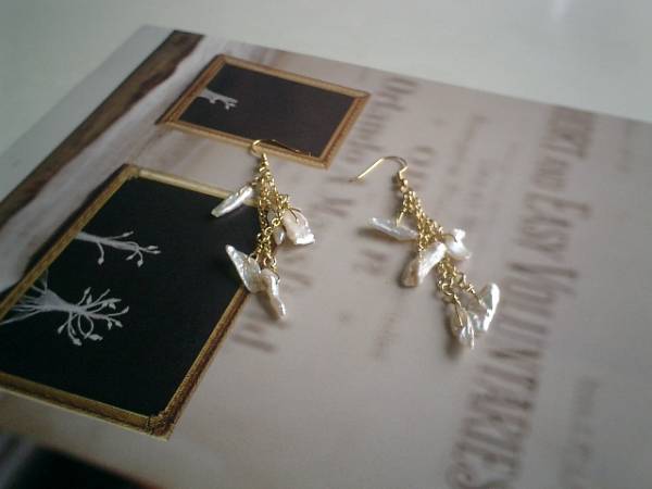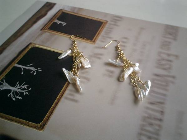 ロマンチックを集めて・・シリーズです♪白い花のように・・可憐なビワパールのピアスです♪ふんわりやさしいオフホワイトのビワパールを2連のチェーンに繋いでいます♪ビワパールは10ミリから15ミリ位までの大きさです♪長さは全長8センチ位です♪イヤリングにも変更出来ます♪お揃いのネックレスやブレスレットも出品しています♪同じシリーズをyouko13570でも出品しています♪シンプルで飽きのこないいつまでも着けられるデザインを考えて作りました!ハンドメイドをご理解頂いてノークレーム、ノーリターンでお願いします