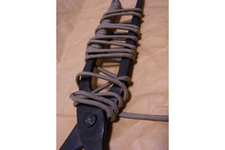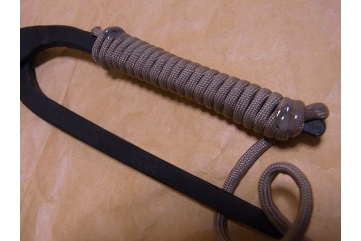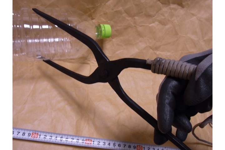 ・ハンドメイドの薪ばさみ(未使用品)でオーダーメイド品です。鉄製で簡単な防錆加工してあります。モールにかけてコンパクトに持ち運べます。パラコードでグリップを巻いていますが、カッター等で容易に取り外しできます。パラコードは一部焼いて樹脂剤で接着していますが簡易に巻いているだけなので使用に伴い緩みが出たりばらけたりするかもしれませんので、その際は新たに好みのパラコード巻きなどしてください。経年に伴う変化などはあるかと思いますので、あくまで個人所有品としてご理解頂ける方のみご入札をお願い致します。