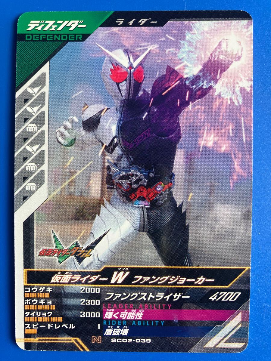 仮面ライダー、ガンバレジェンズの第SC02弾から、No.039、ディフェンダーカード《仮面ライダーW・ファングジョーカー》の登場です。発送は、普通郵便を利用します。(特にご希望のない場合)おとりまとめも可能ですが、送料に変動する場合がございます。また、送料のご請求は、自宅での計量を基準にご請求させていただいておりますので、実際の金額と差異が出る場合もございます。予めご了承ください。他にも多数出品中です。まとめてこの機会にいかがでしょうか?ご質問お待ちしております。