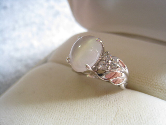 [SAMU]素敵!!大玉天然キャッツアイムーンストーン幅12mmx9mm シルバー925指輪#13号!