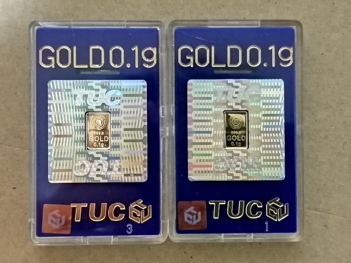 徳力本店の純金インゴット0.1gの2個セットになります。(TUC正規流通品、ケース入り)