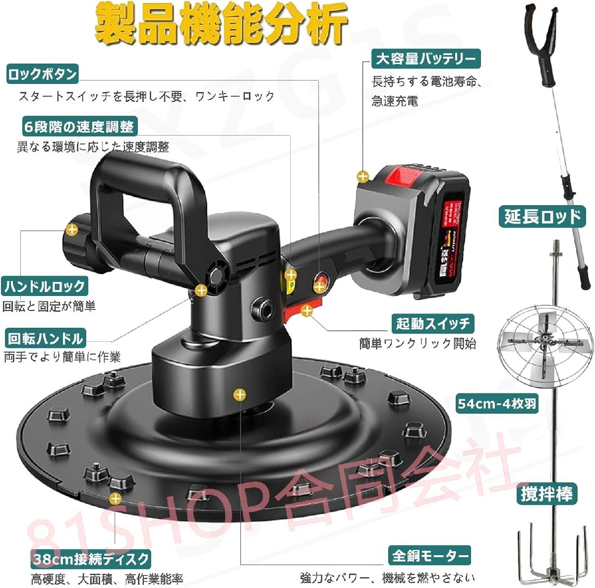 「81SHOP」充電式トロウェル コンクリート研磨機 セメント モルタルこて 新しい包装 電動コテ ポリッシャー パワートロウェル 6速調整 延