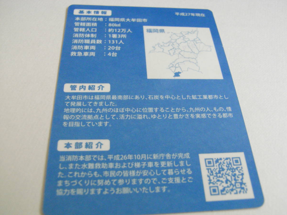 消防カード 大牟田消防本部 福岡県大牟田市 一般財団法人全国消防協会 設立50周年記念 消防署カード