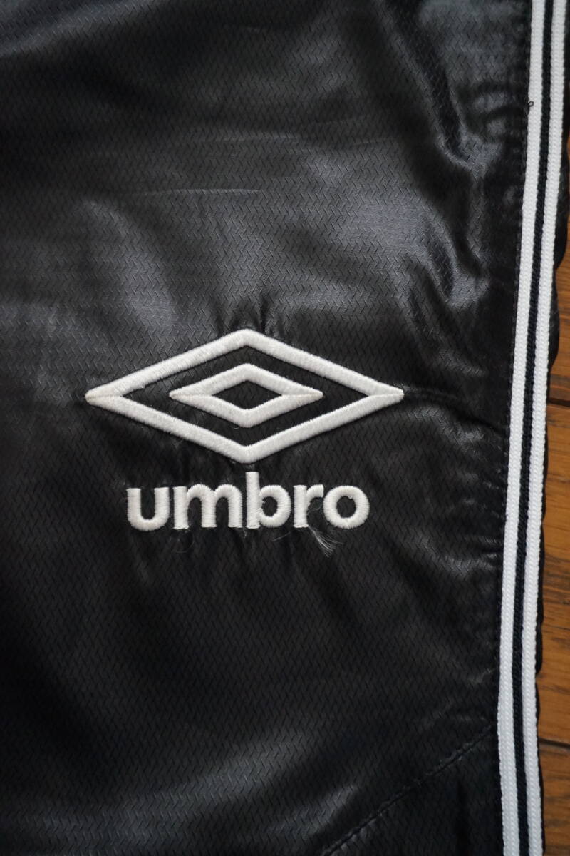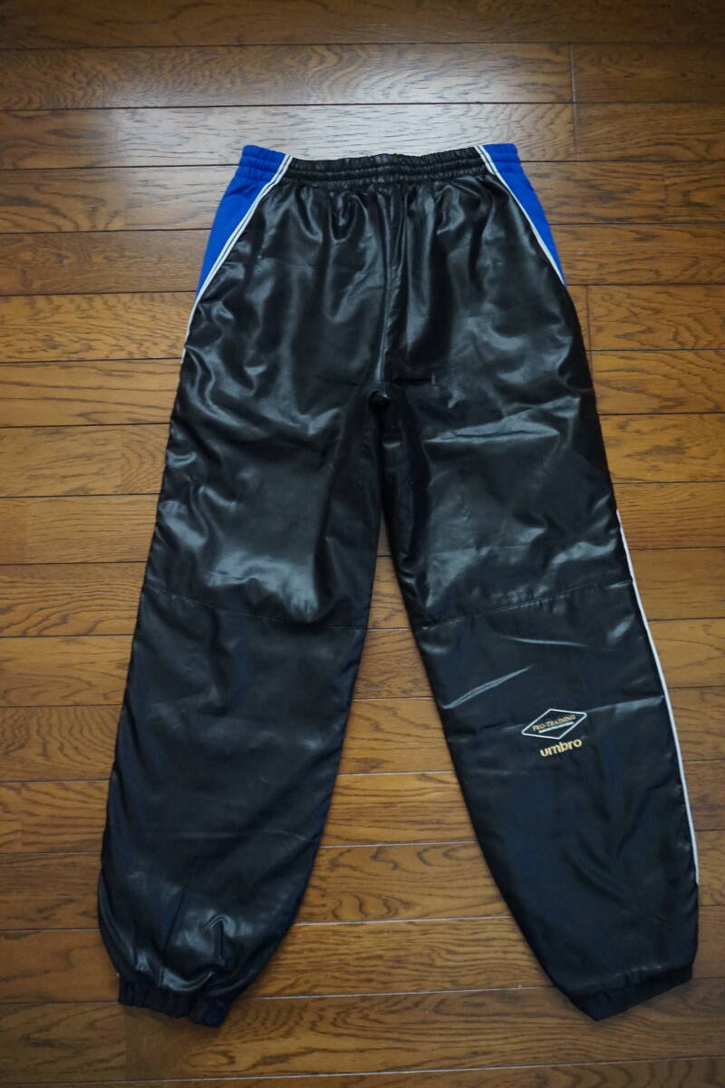 *◇ UMBRO アンブロ ◇ ジュニア PRO-TRAINING 中綿 ピステパンツ ◇ size 150  です。  10枚目の写真にありますように、右足の後ろのゴムがきれています。     畳ジワ・洗濯による毛羽立ち・色落ち・細かいキズ等があります。