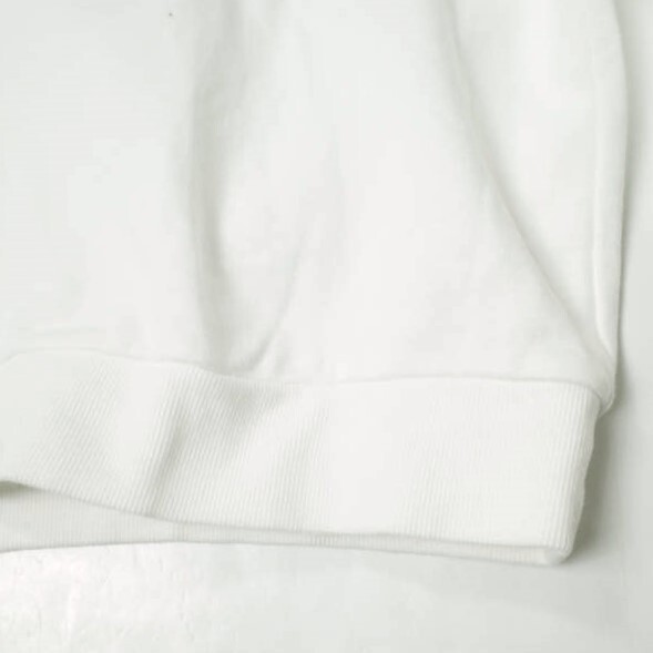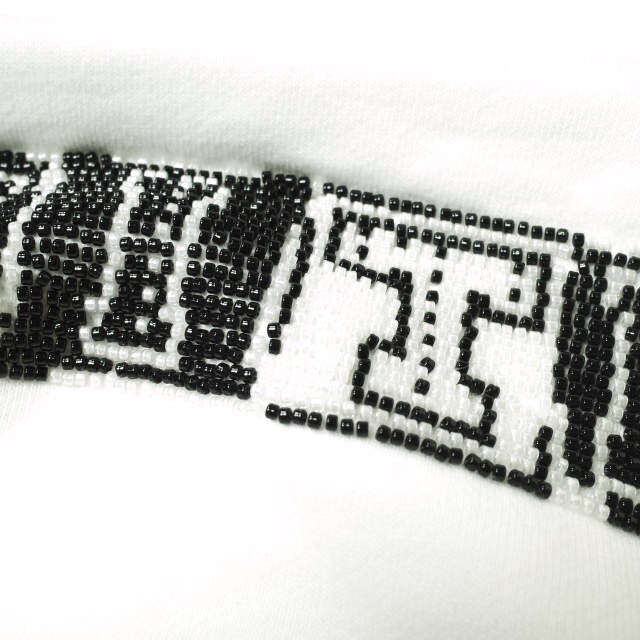 フロント、バックともにロゴがビーズでデザインされた裏毛クルーネックスウェット。