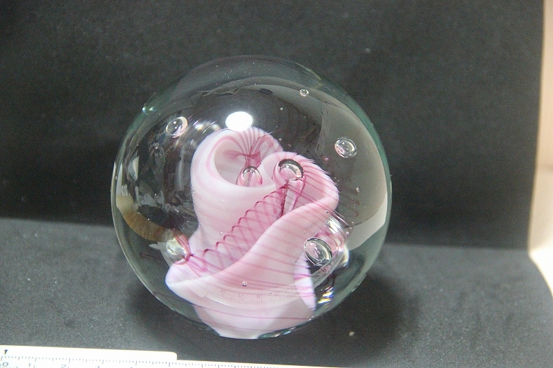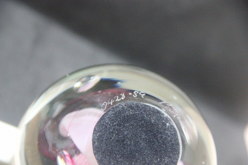 ガラス製 Patco ? 工芸ガラス 球体型 直径 約 8.8cm 検索 サイン入 文鎮 インテリア ペーパーウェイト 置物 グッズ