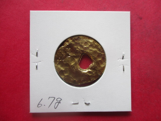 原始佐渡金 円穴 刻印「佐渡ヶ島」 量目6.7g