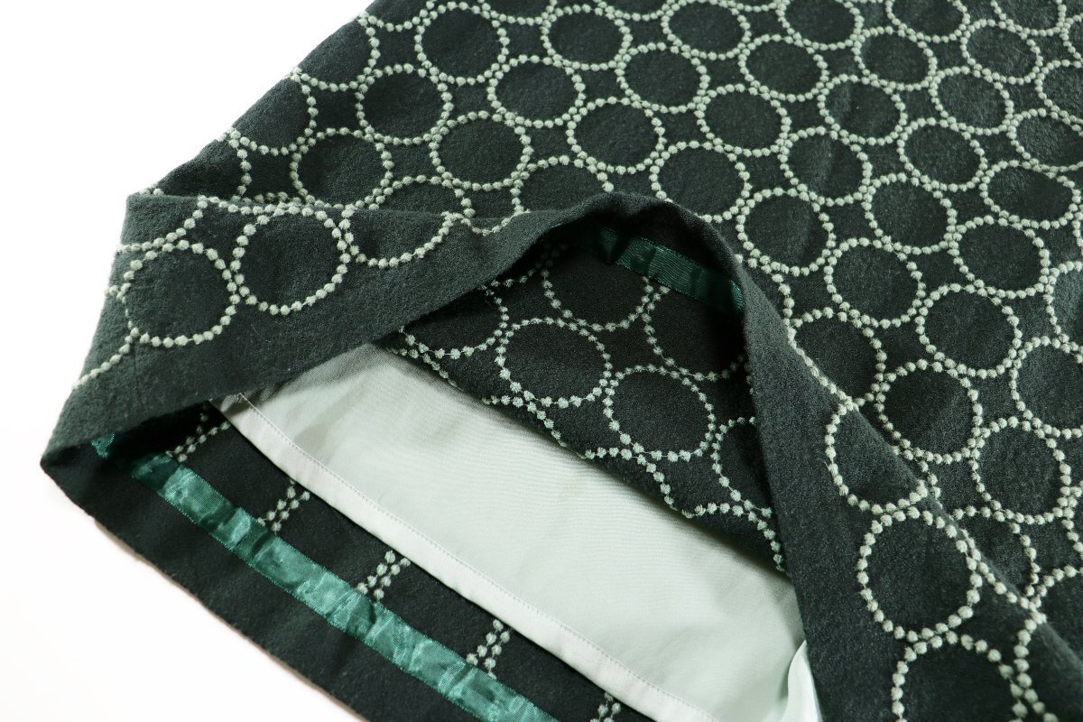 ふっくら温かな毛織物で、グレーみのある濃い緑色です。
