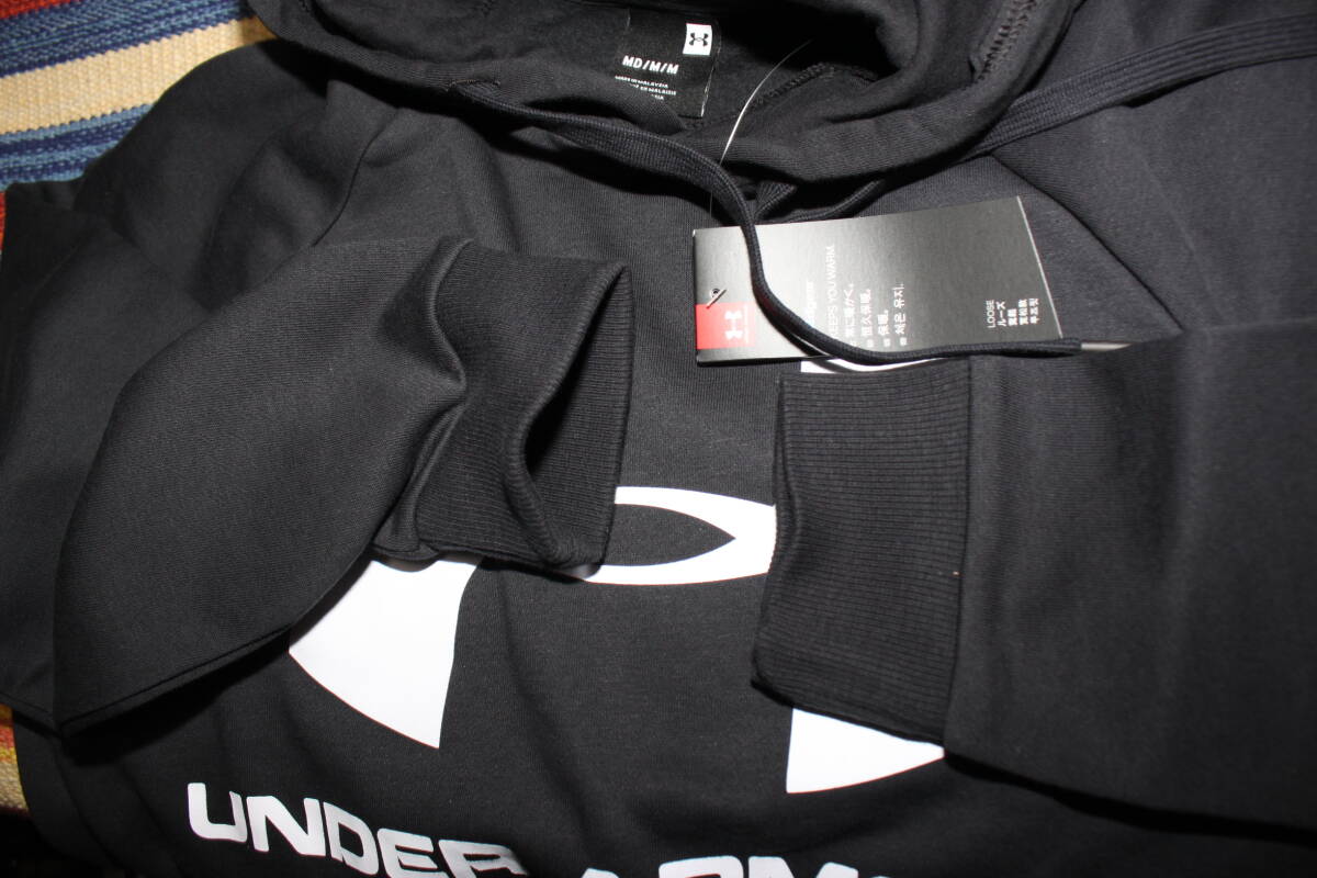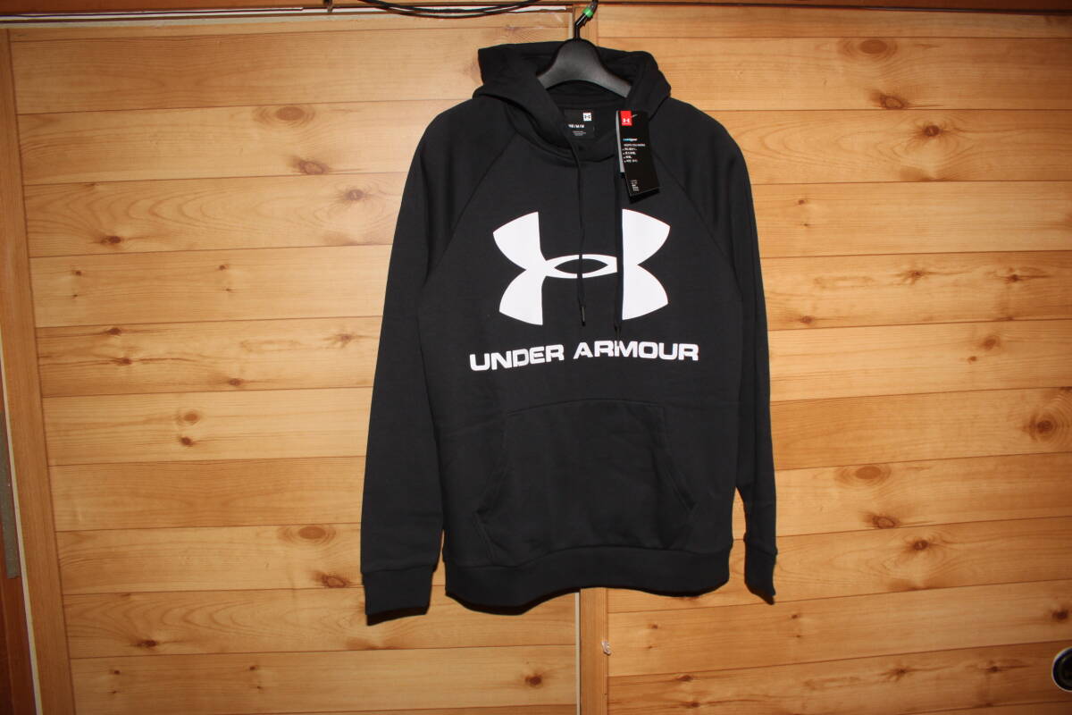 未使用 アンダーアーマー MD 黒  ライバルフリース ビッグロゴ 裏起毛 スウェットパーカー  1345628 送料無料