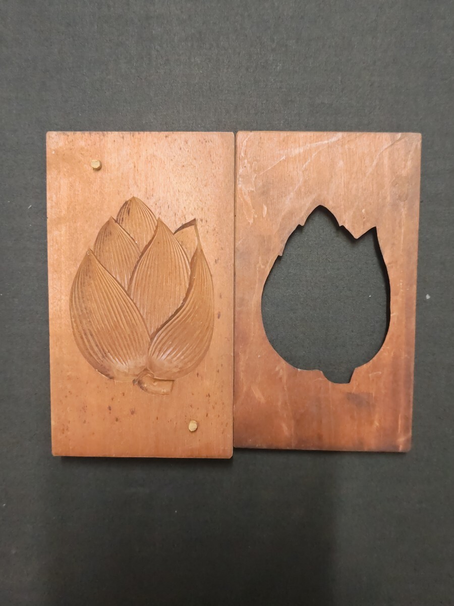 &32 木製菓子型 木彫 当時物 古道具