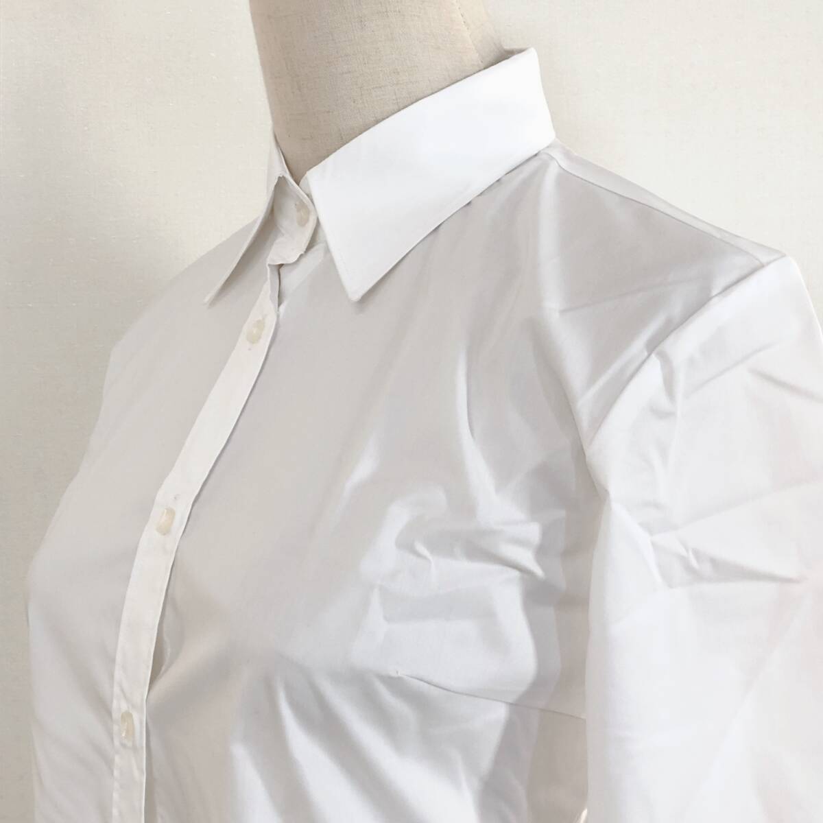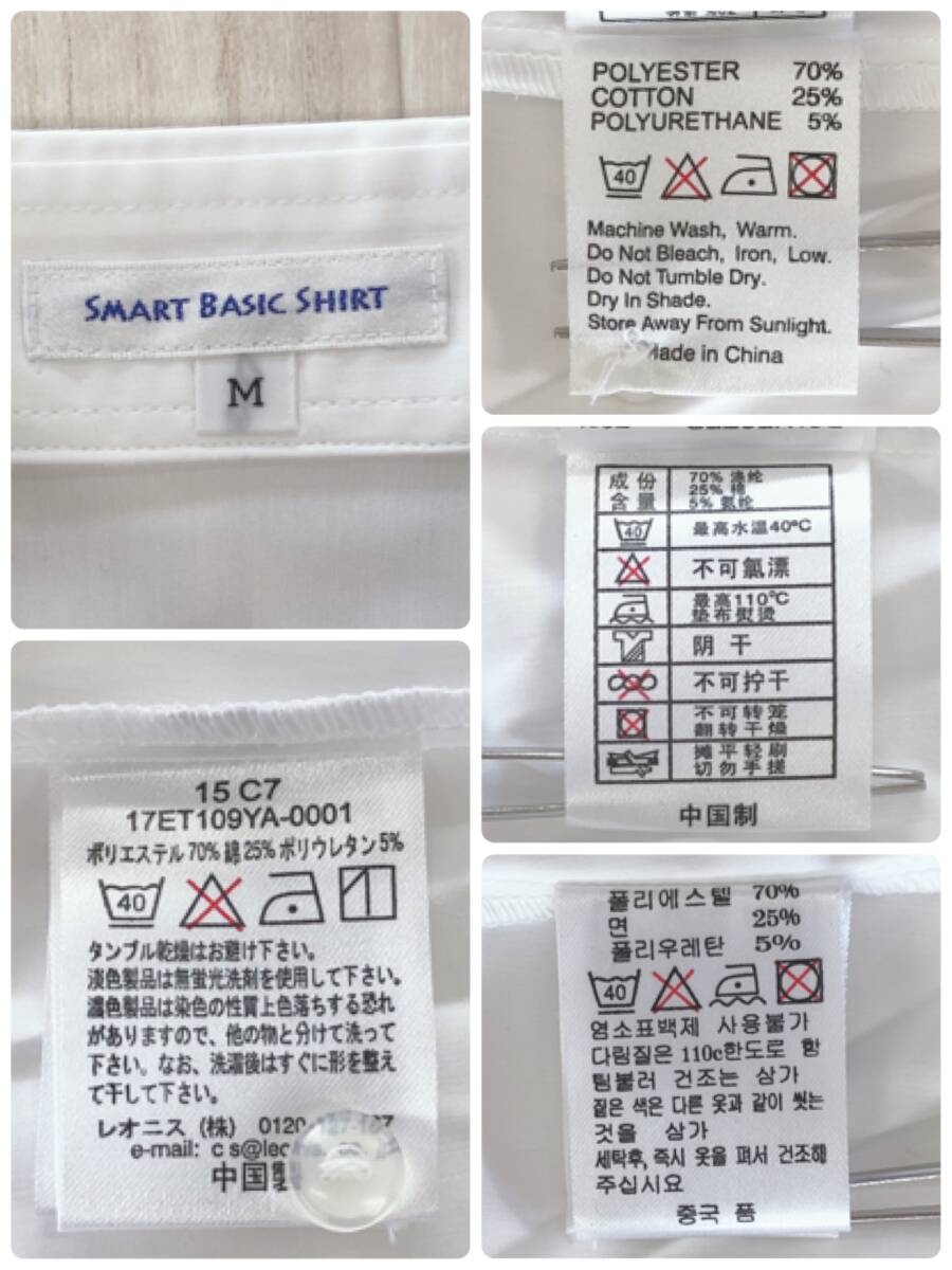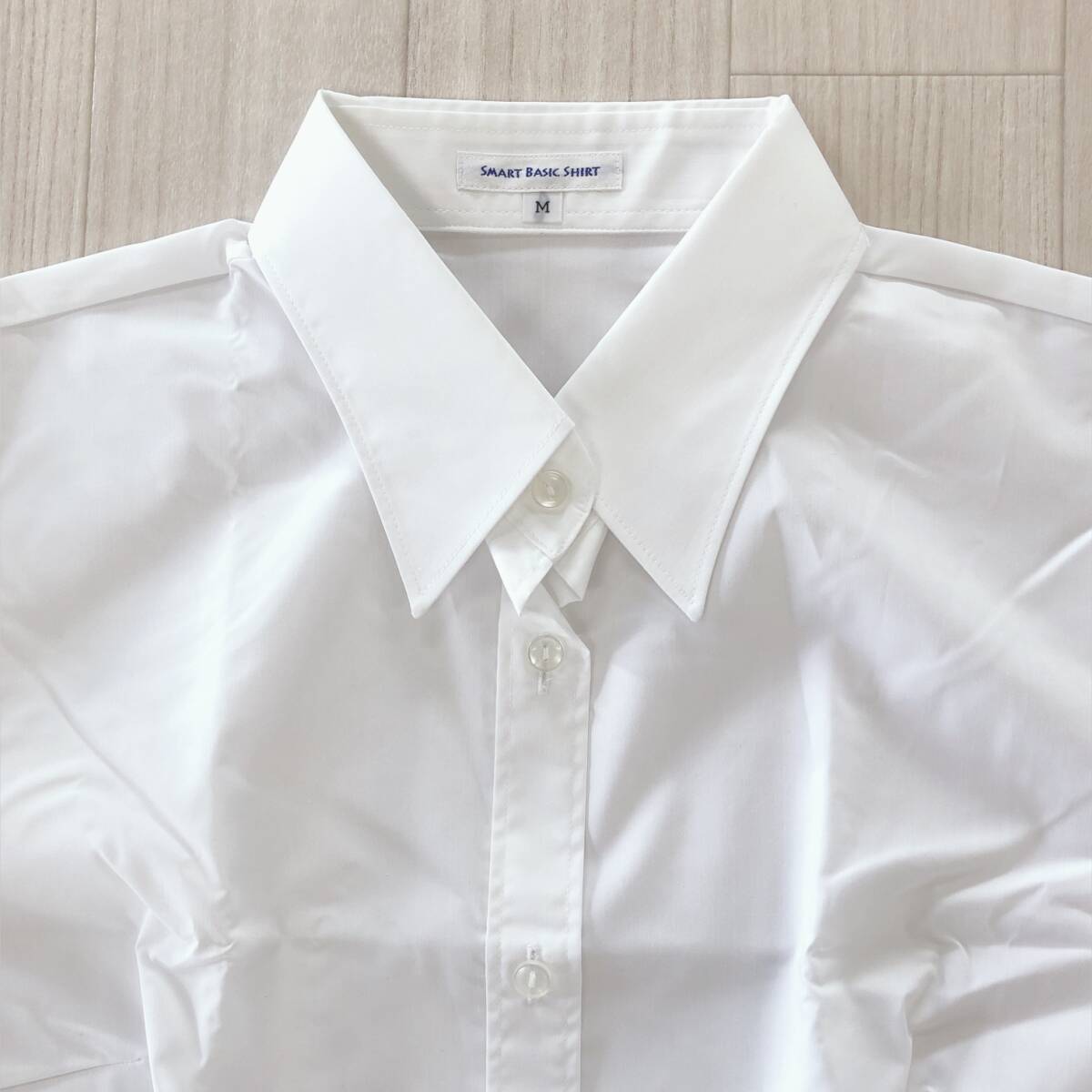 Y1487 美品SMART BASIC SHIRTレディース トップス シャツ 長袖 薄手 2つ穴ボタン M ホワイト 白 綿素材含 シンプル オフィススタイル 春秋