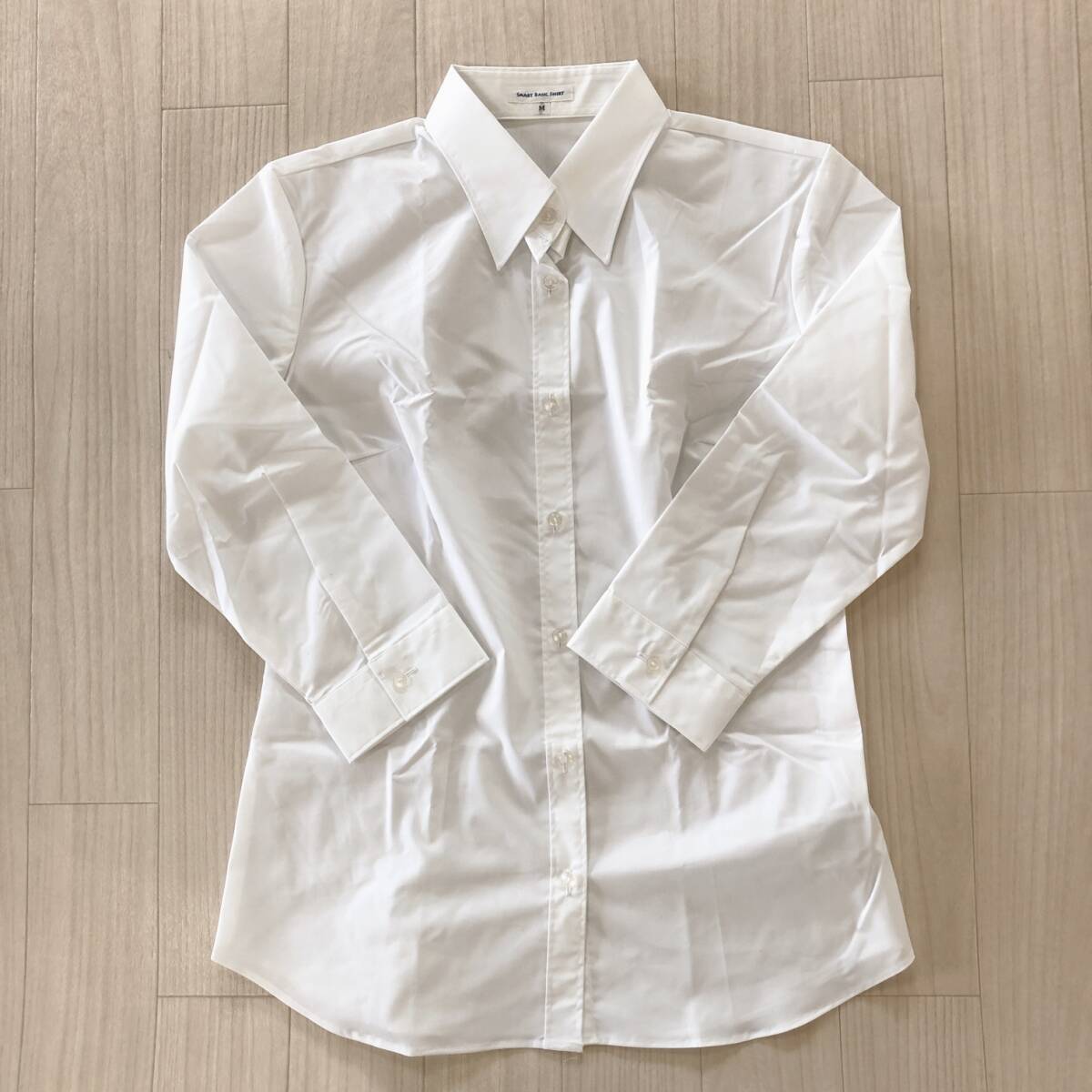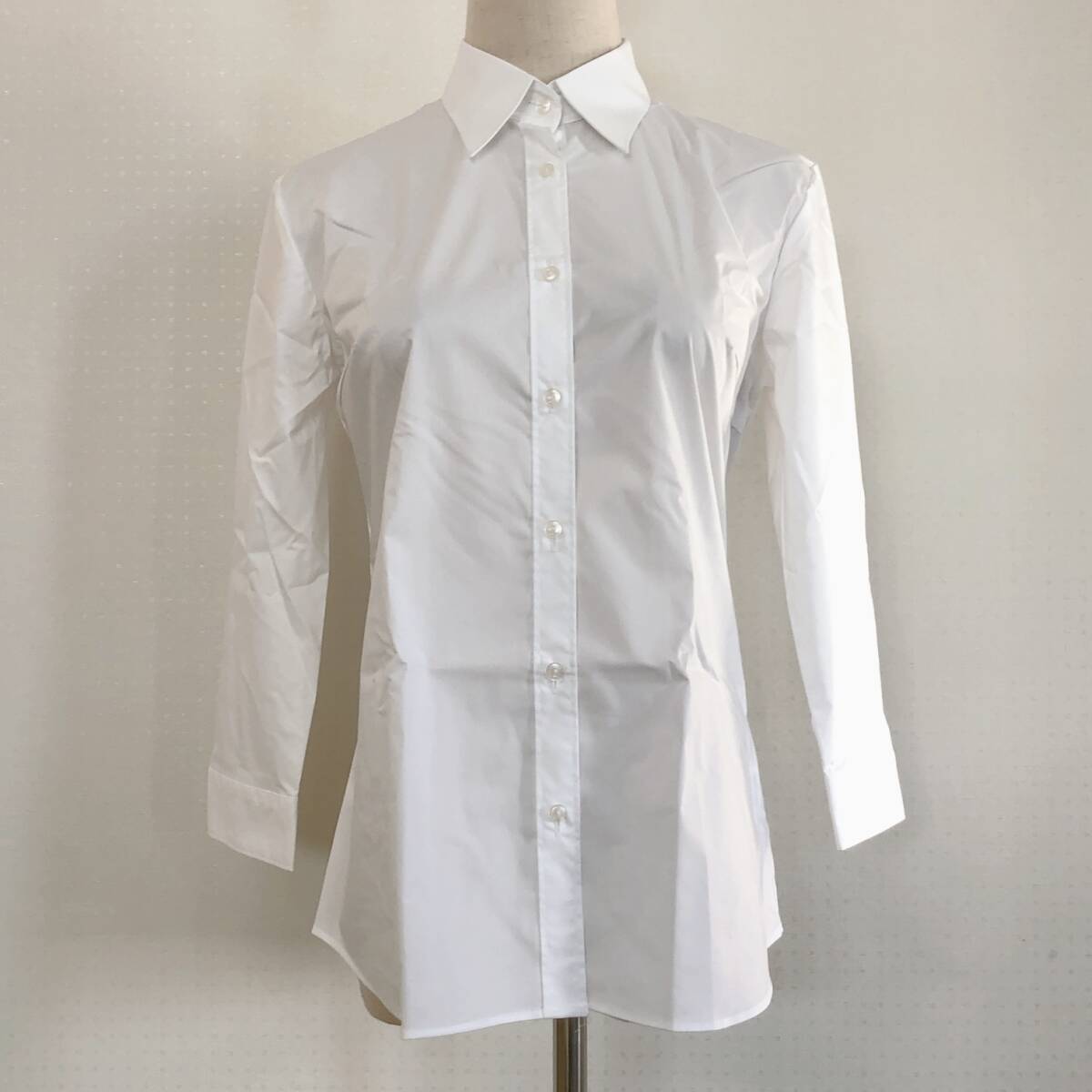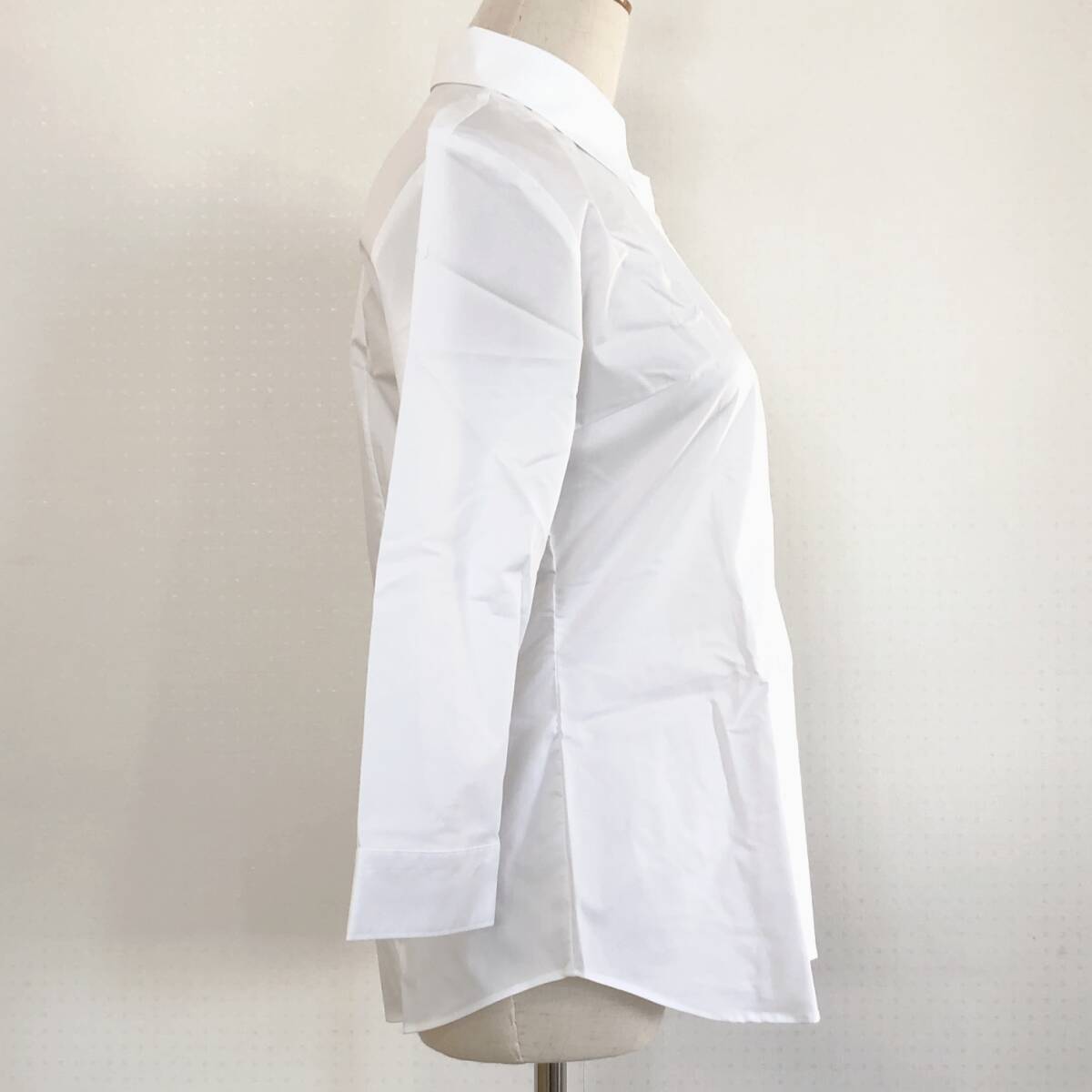 Y1487 美品SMART BASIC SHIRTレディース トップス シャツ 長袖 薄手 2つ穴ボタン M ホワイト 白 綿素材含 シンプル オフィススタイル 春秋