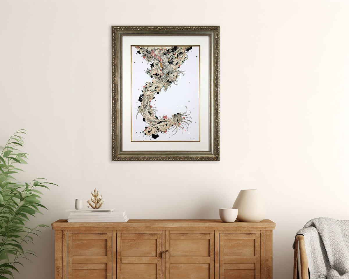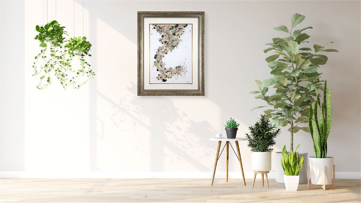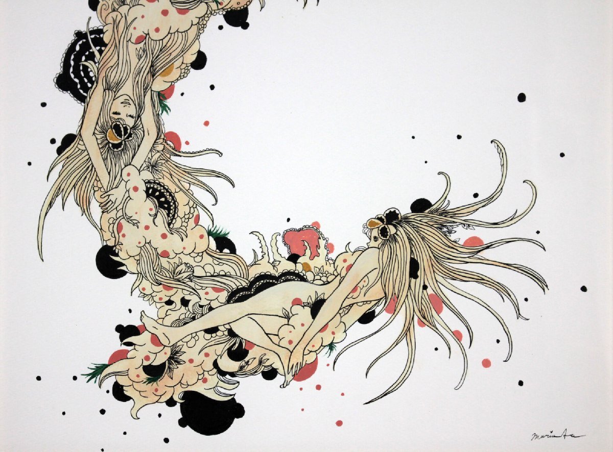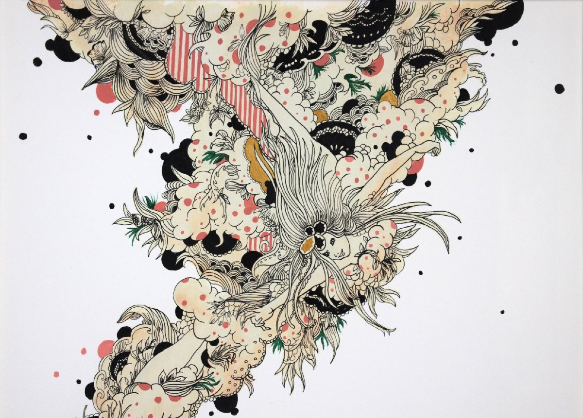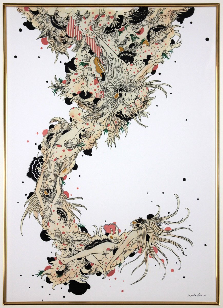 女性の体のラインや動植物で流れの美しさを表現した作品