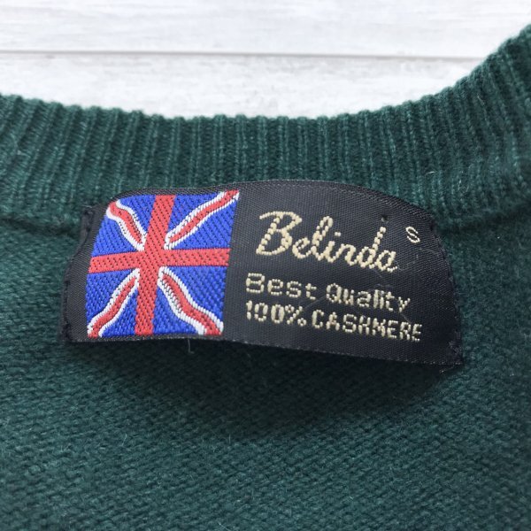 Belinda レディース カシミヤ100% 金ボタン 丸首 ニットカーディガン S ダークグリーン です。