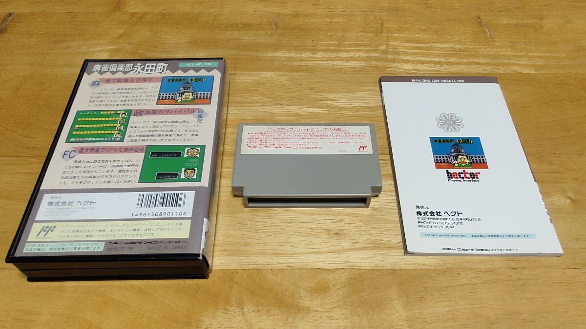 ファミコン用ソフト「麻雀倶楽部永田町」(箱・取説付き)です。