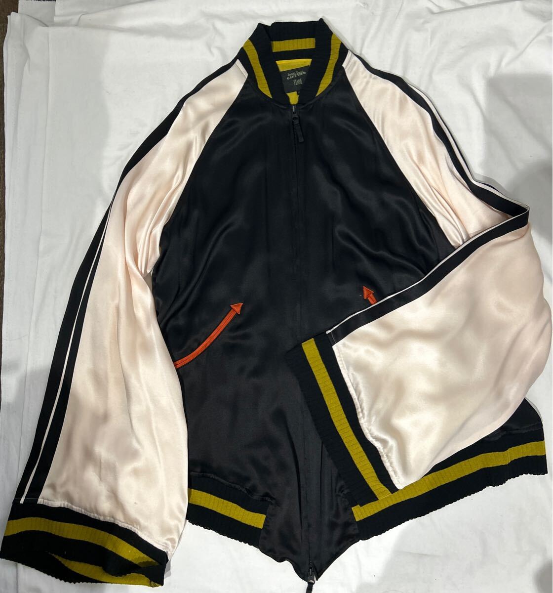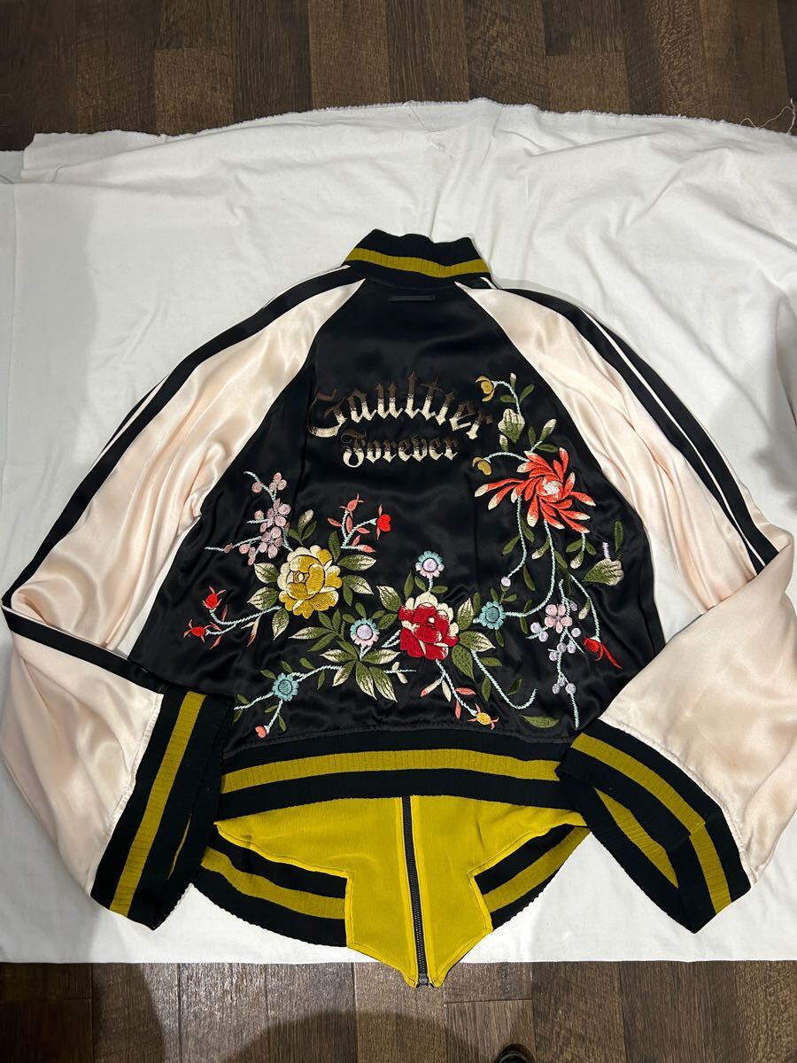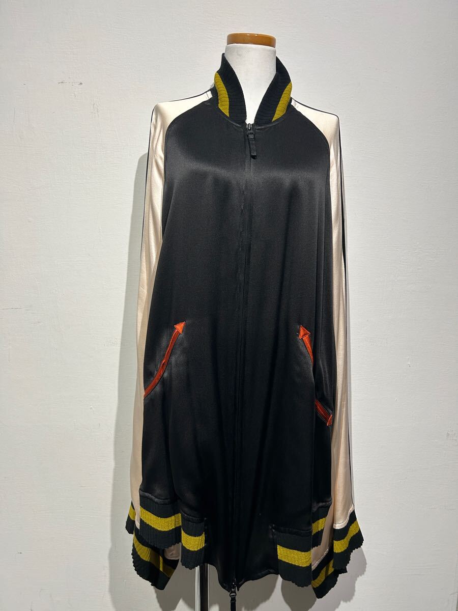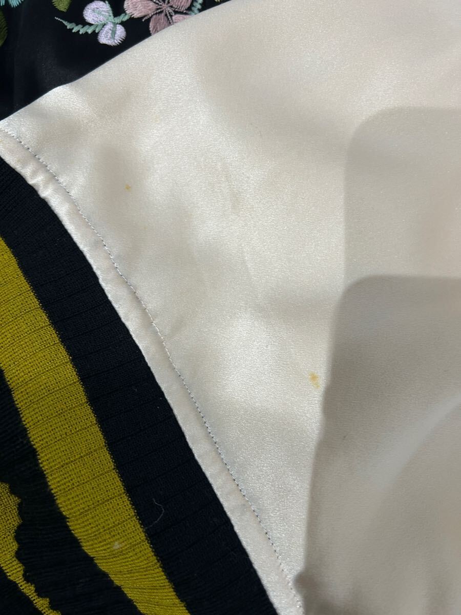 美しい刺繍が施されたシルク素材のジャケット。色鮮やかな花柄が特徴。