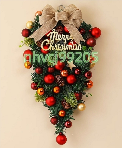 クリスマスリースは、たくさんのクリスマスボールと大きなリボンで飾られた、ユニークで美しい逆さまのクリスマスツリーでデザインされています。クリスマスリースは休日の装飾に最適で、暖炉、壁、玄関ドア、窓、ポーチなどに置くことができ、屋内または屋外の装飾に適しています。ご自宅に暖かいクリスマスの雰囲気をもたらします。フロント ドア用のクリスマス リースは、友人や家族への素晴らしい贈り物であり、より強いお祝いの雰囲気を作り出します。