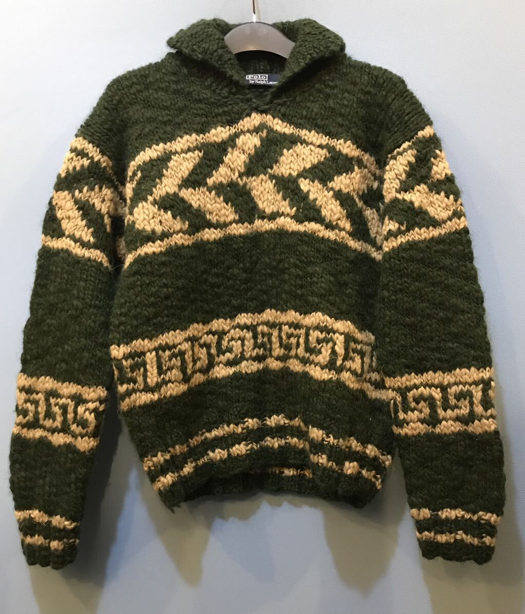 Polo Ralph Lauren ポロラルフローレン ウール100% 手編み hand knit ショールカラーニット カウチン 厚手