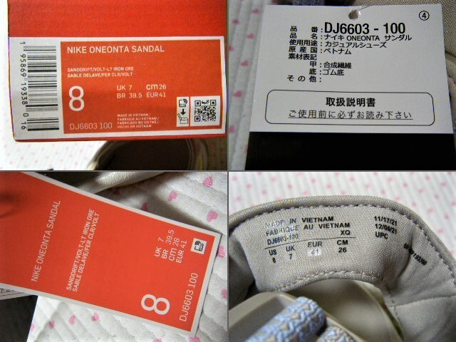 ナイキ NIKE TRAIL ONEONTA SANDAL アウトドア&カジュアル用高性能サンダル・トレイルサンダル 薄グレー系 サイズ 26.0㌢ 水陸両用