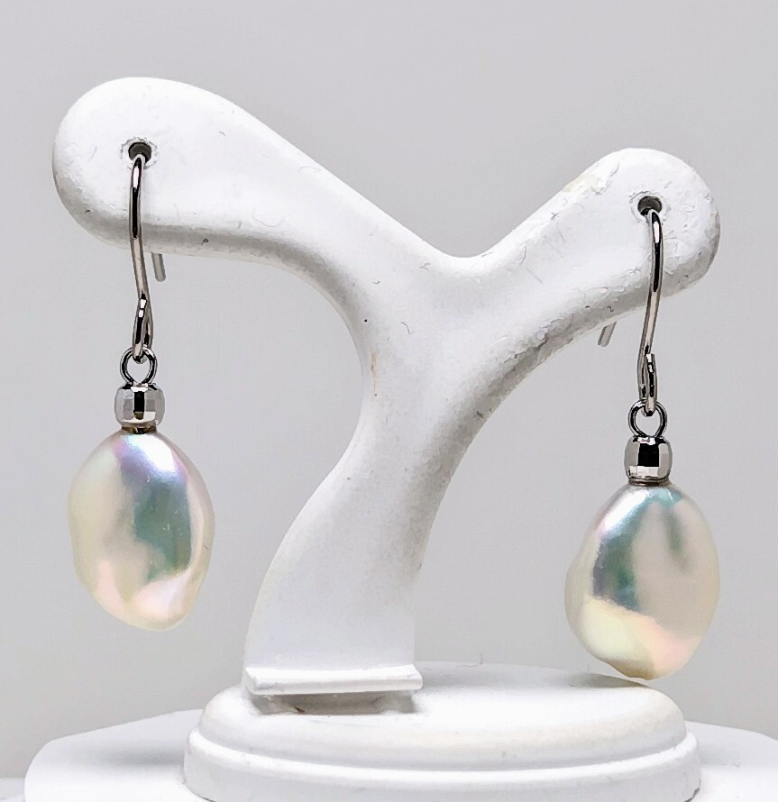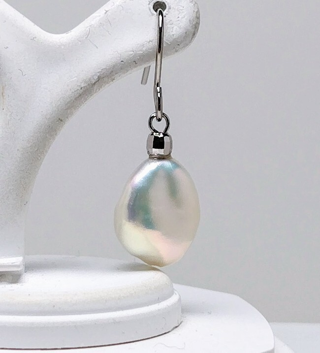 真珠専科 色テリ 最上花珠級 12.1㎜×9.6㎜ 淡水真珠 ぶら下がり ピアス