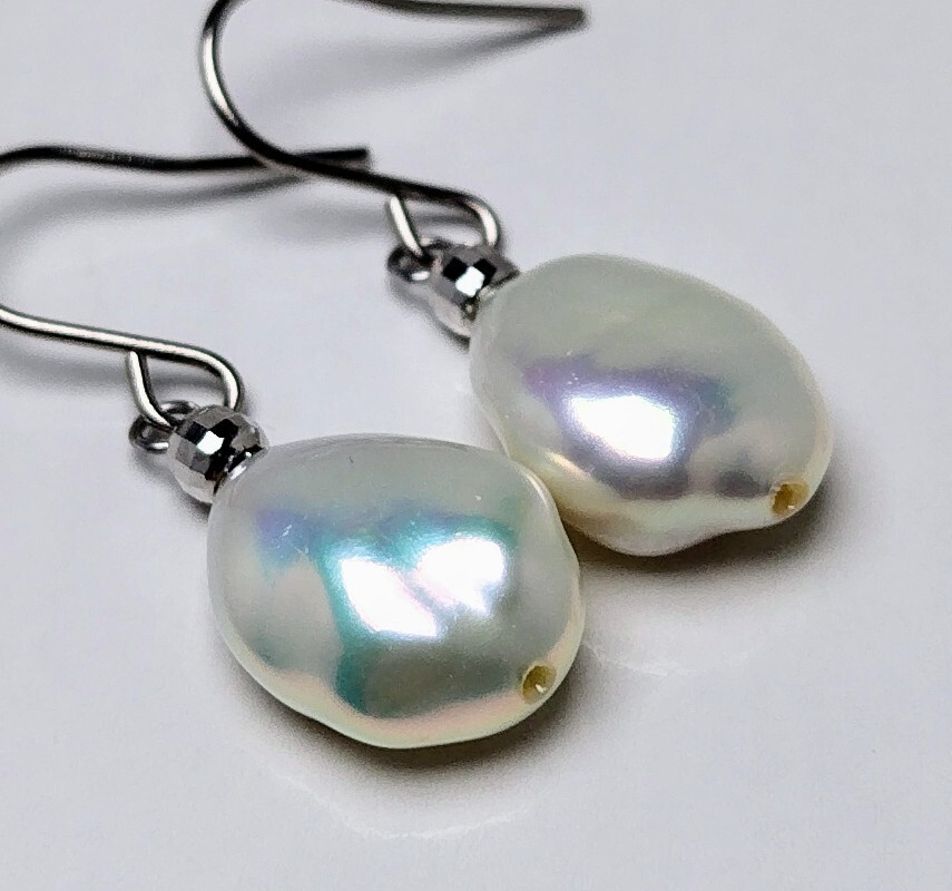 ☆表面が滑らかな最上の南洋珠と同等の色、テリで大変綺麗なぶら下がりタイプのピアスです。