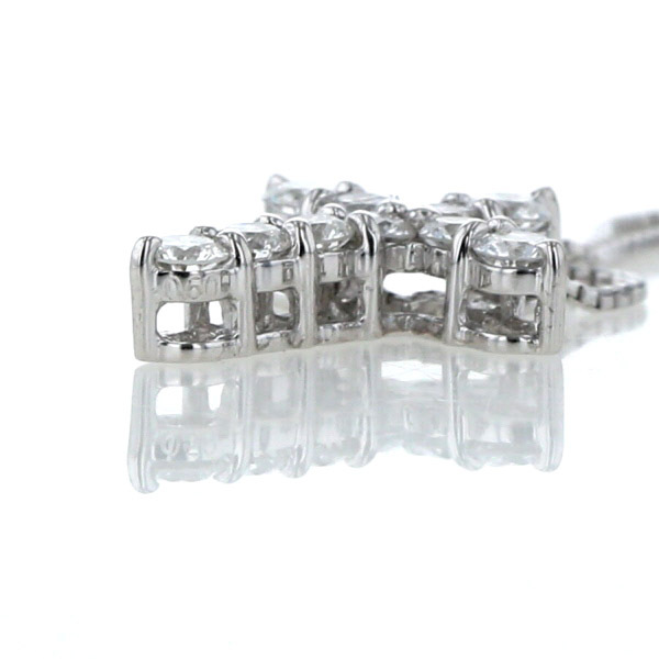 | 商品紹介 | ホワイトゴールドの柔らかい輝きとダイヤの美しい輝きで胸元を華やかに魅せるネックレスです。クロスデザインもお洒落です。 |
