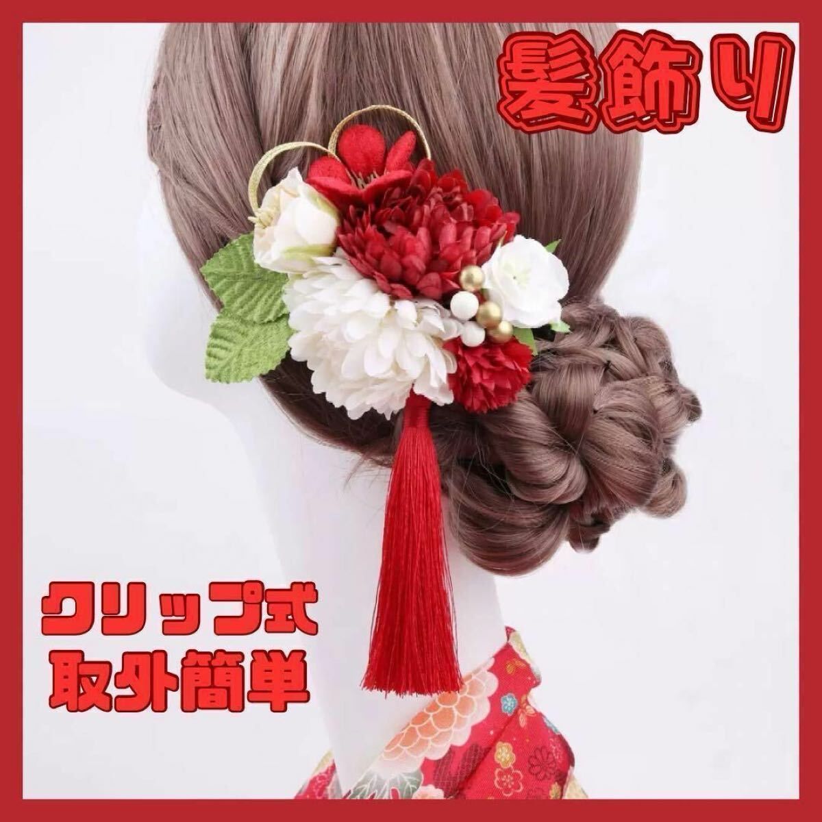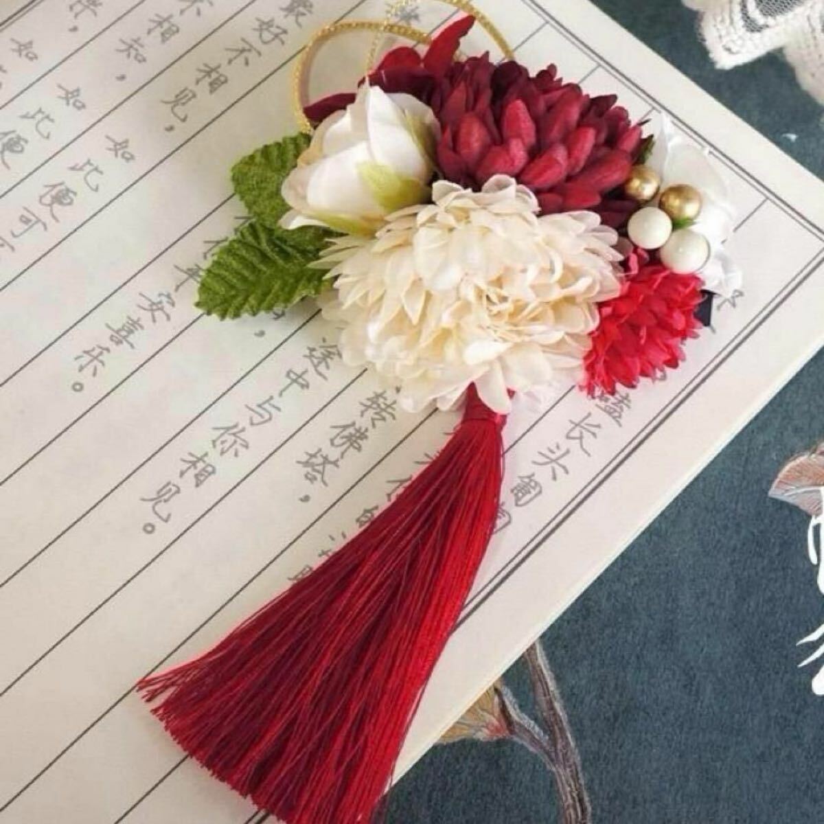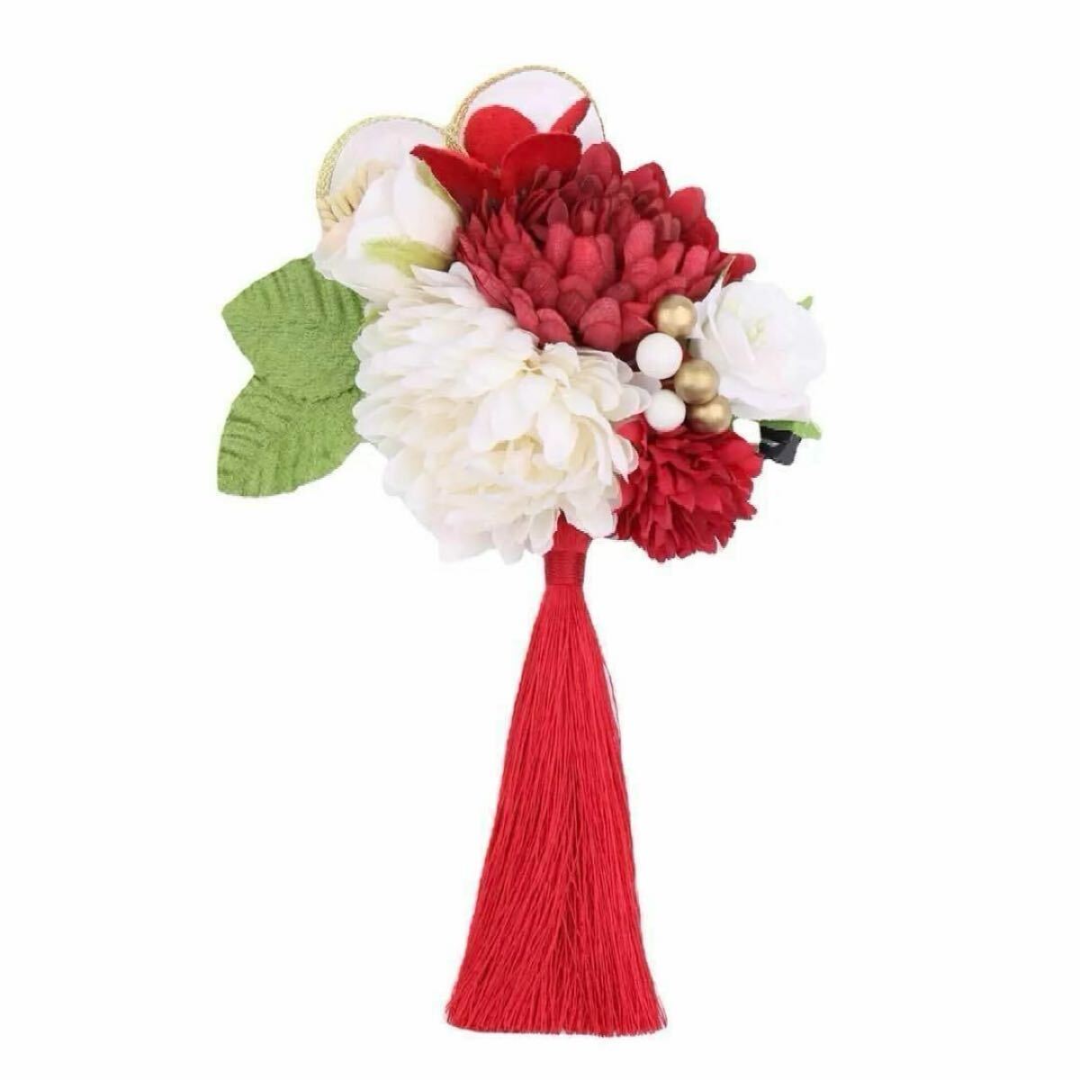 華やかな和風のヘアアクセサリー!大きなフラワーの飾りと揺れる房が豪華で見た目がとっても可愛いアイテムです。