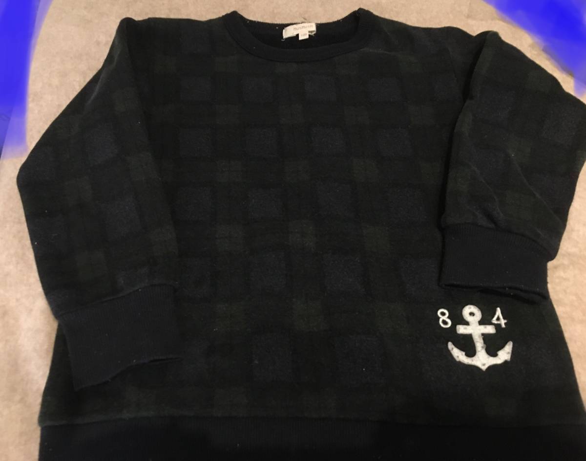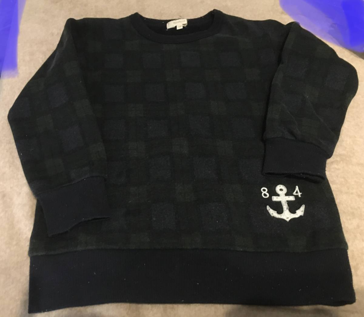 新品 HusHusH マリン裏シャギートレーナー ネイビー(293)×チェック柄 14(140cm) 定価2430円