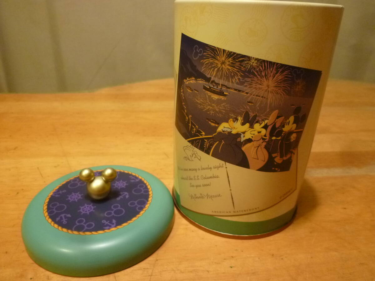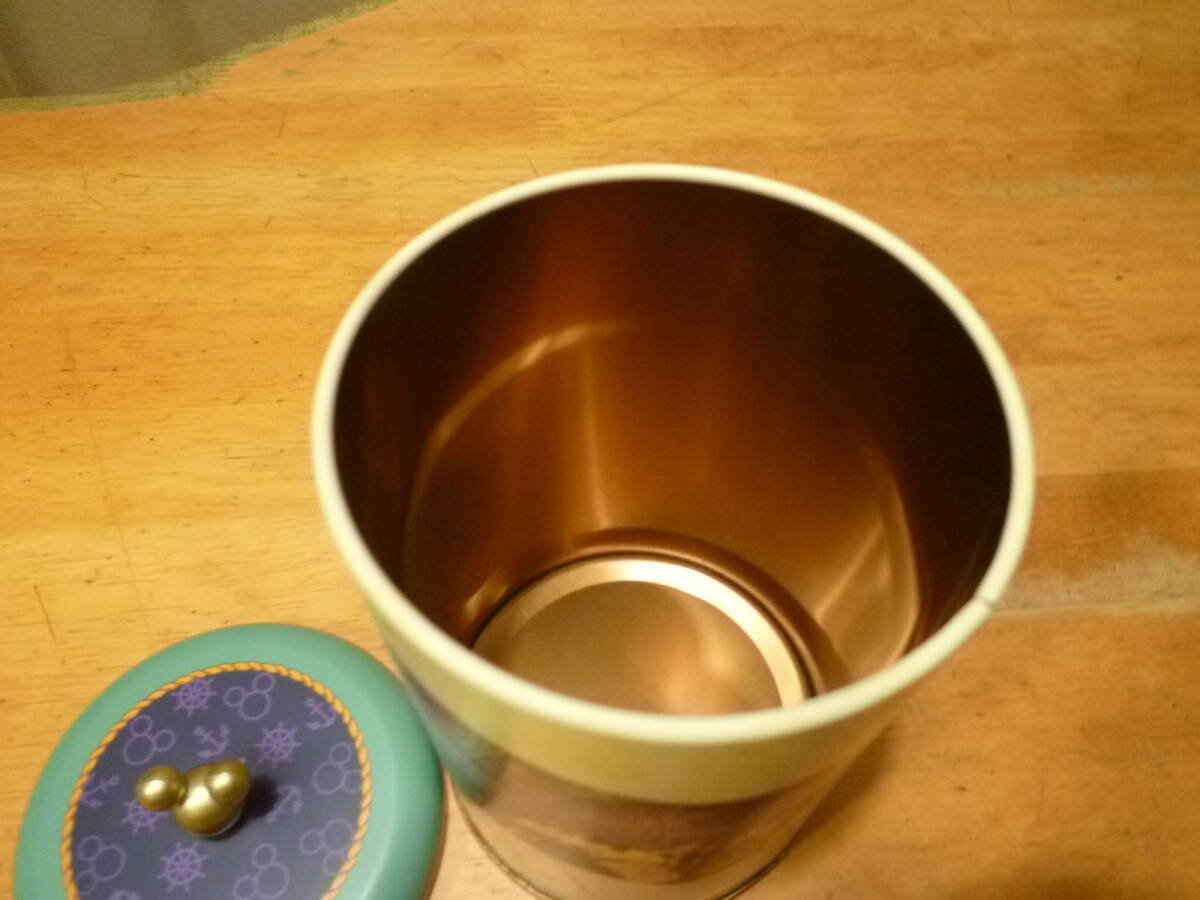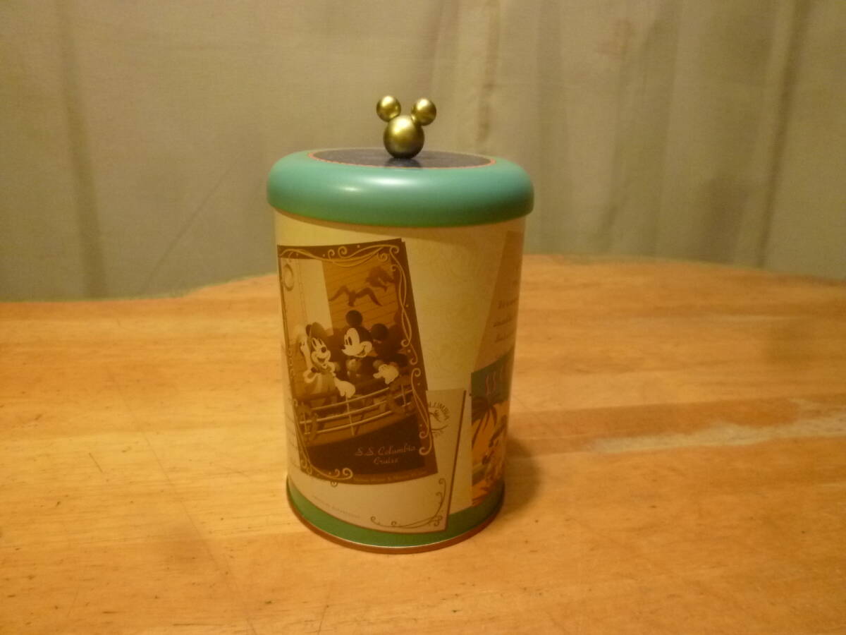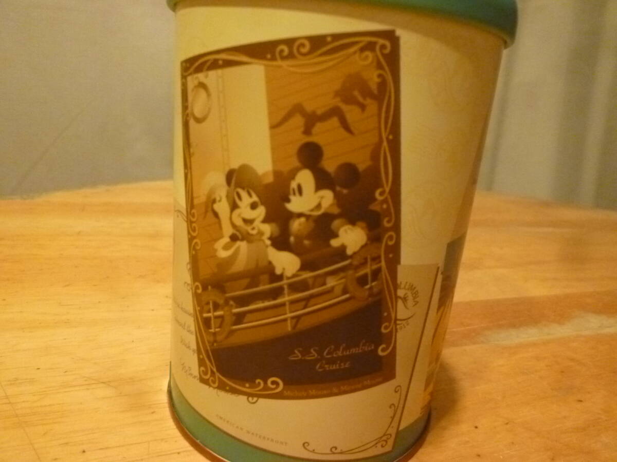 こちらはミッキーのチョコレート菓子空き缶の様です。レトロ風な色合いで、懐かしい感じもあり、取っ手のミッキーもオシャレです。