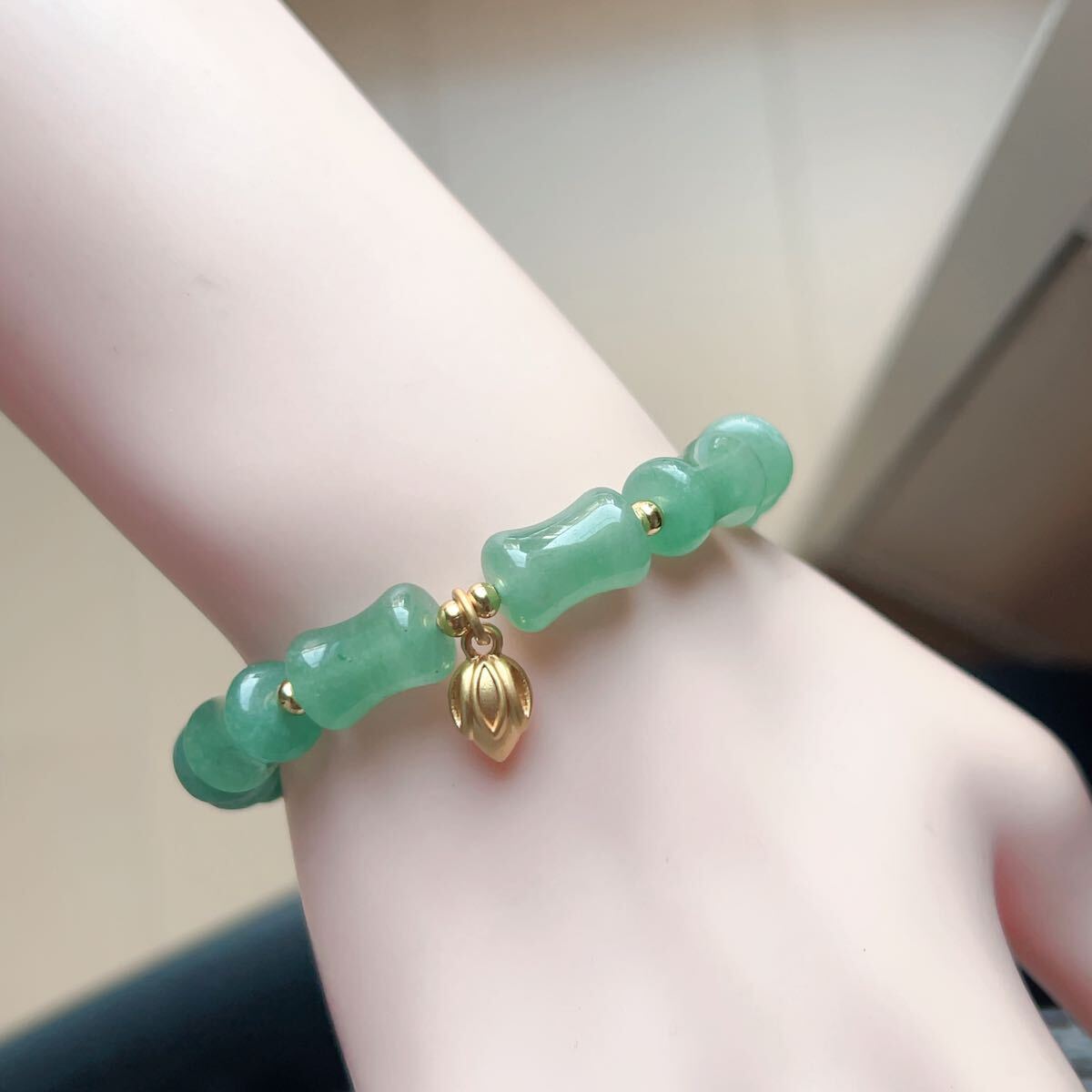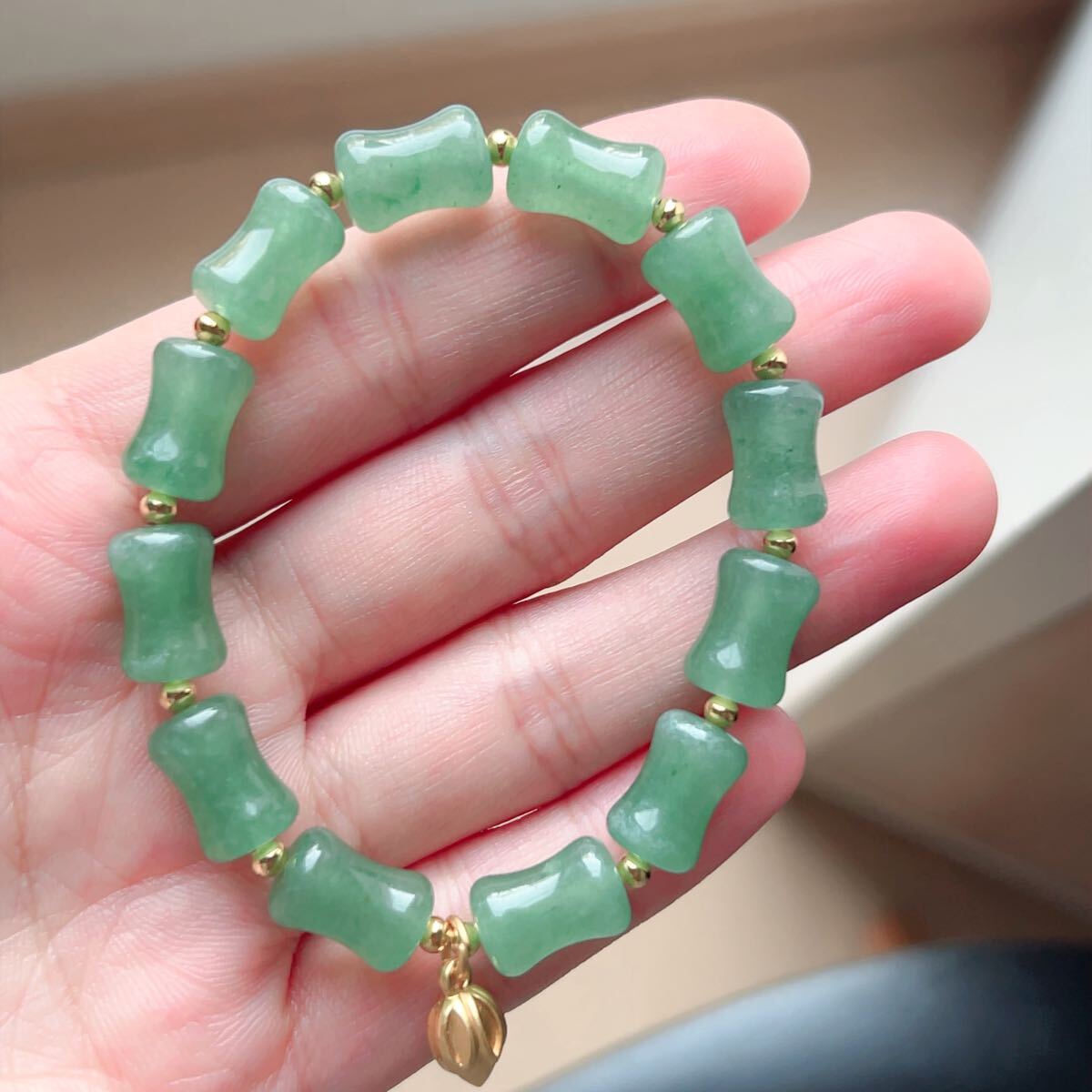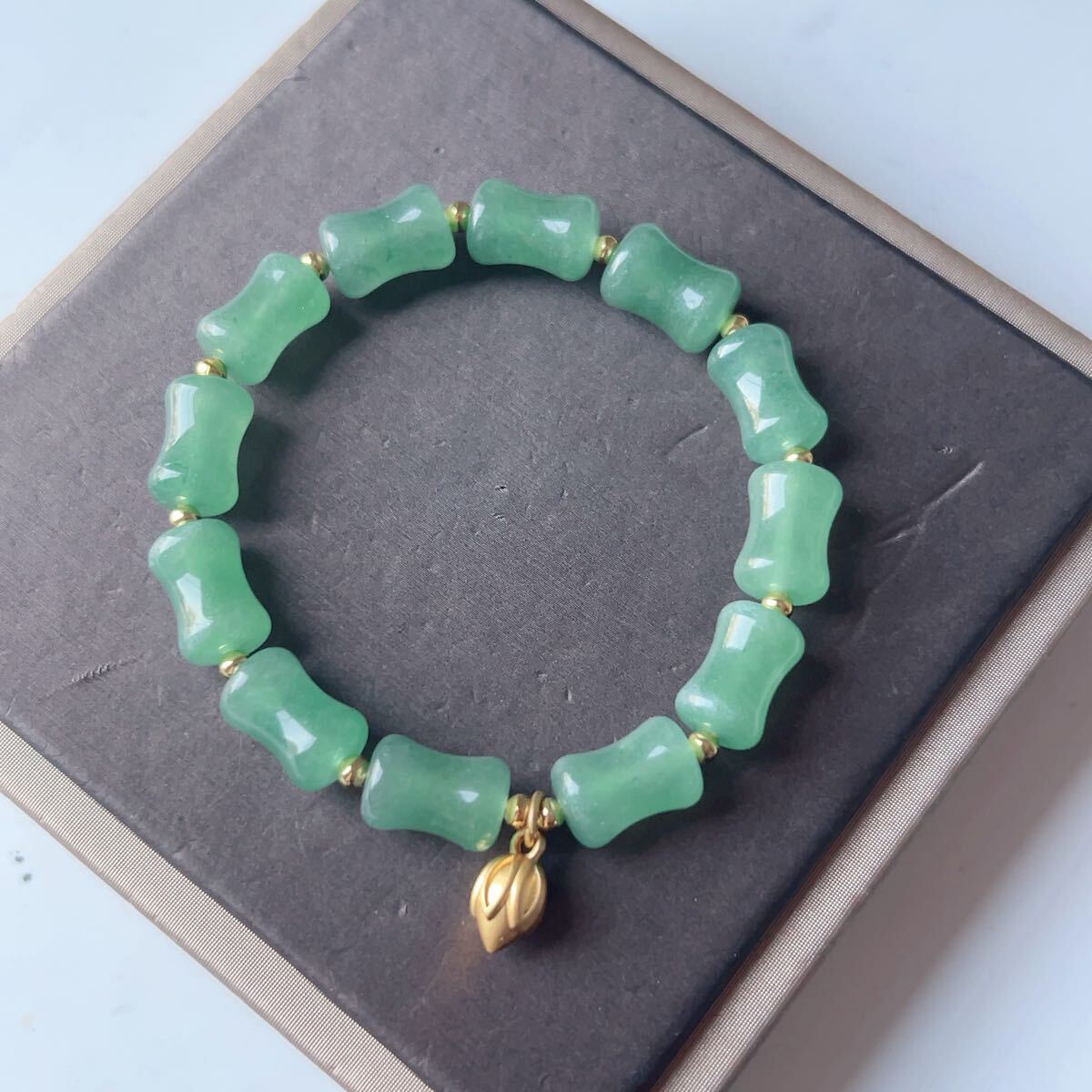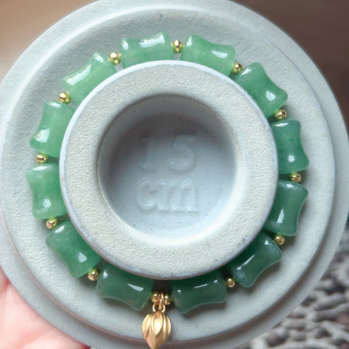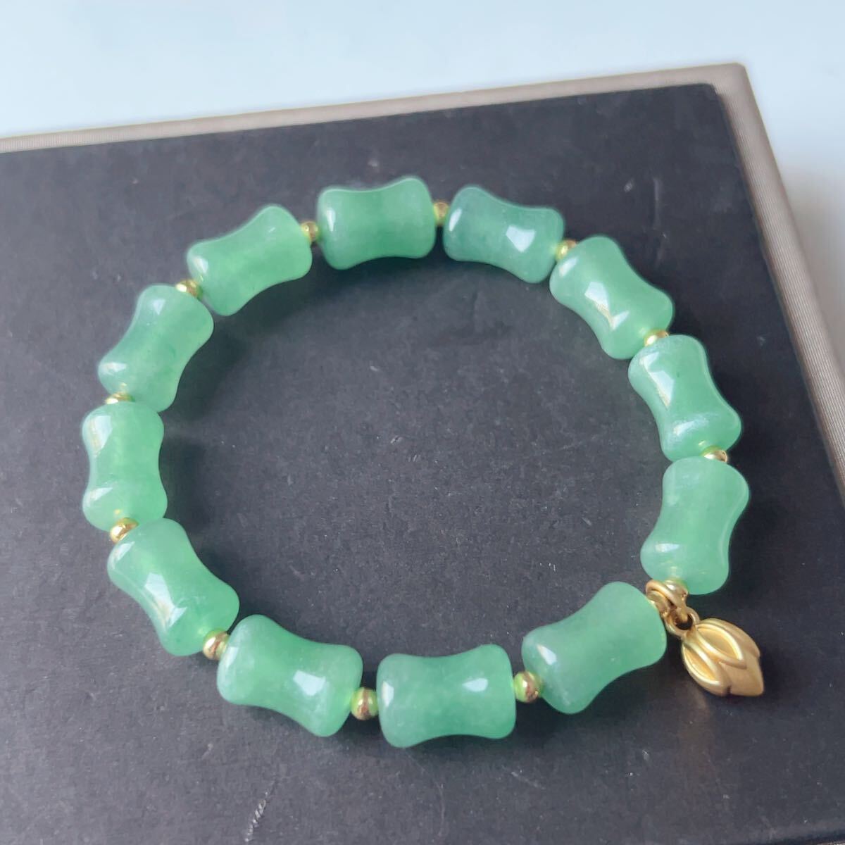 ◇東陵玉◇ブレスレット◇竹の節形◇パワーストーン◇天然石◇翡翠・ヒスイ◇巾着袋付き◇プレゼントにも 030B11111