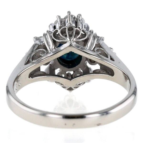 | 商品紹介 | 落ち着いた青色のサファイアがあしらわれたプラチナリングは、大人オシャレを更に引き立ててくれます。 |