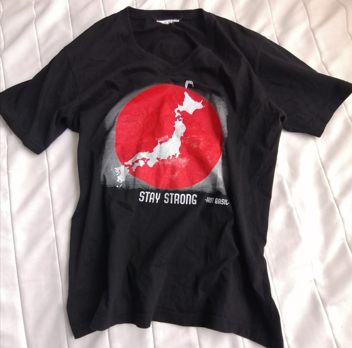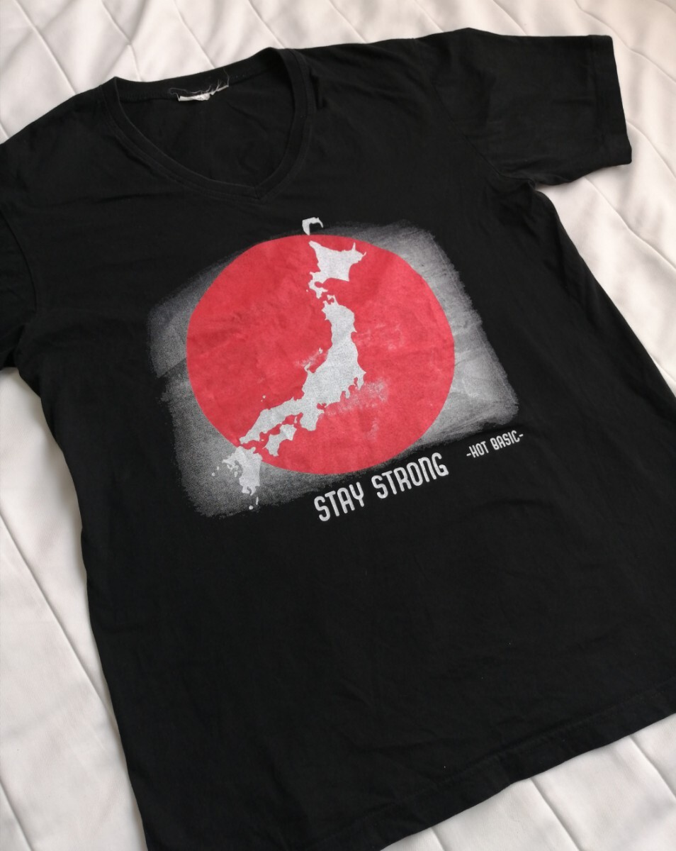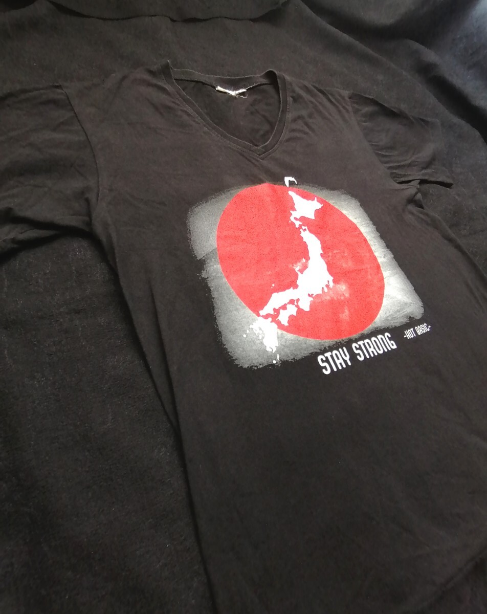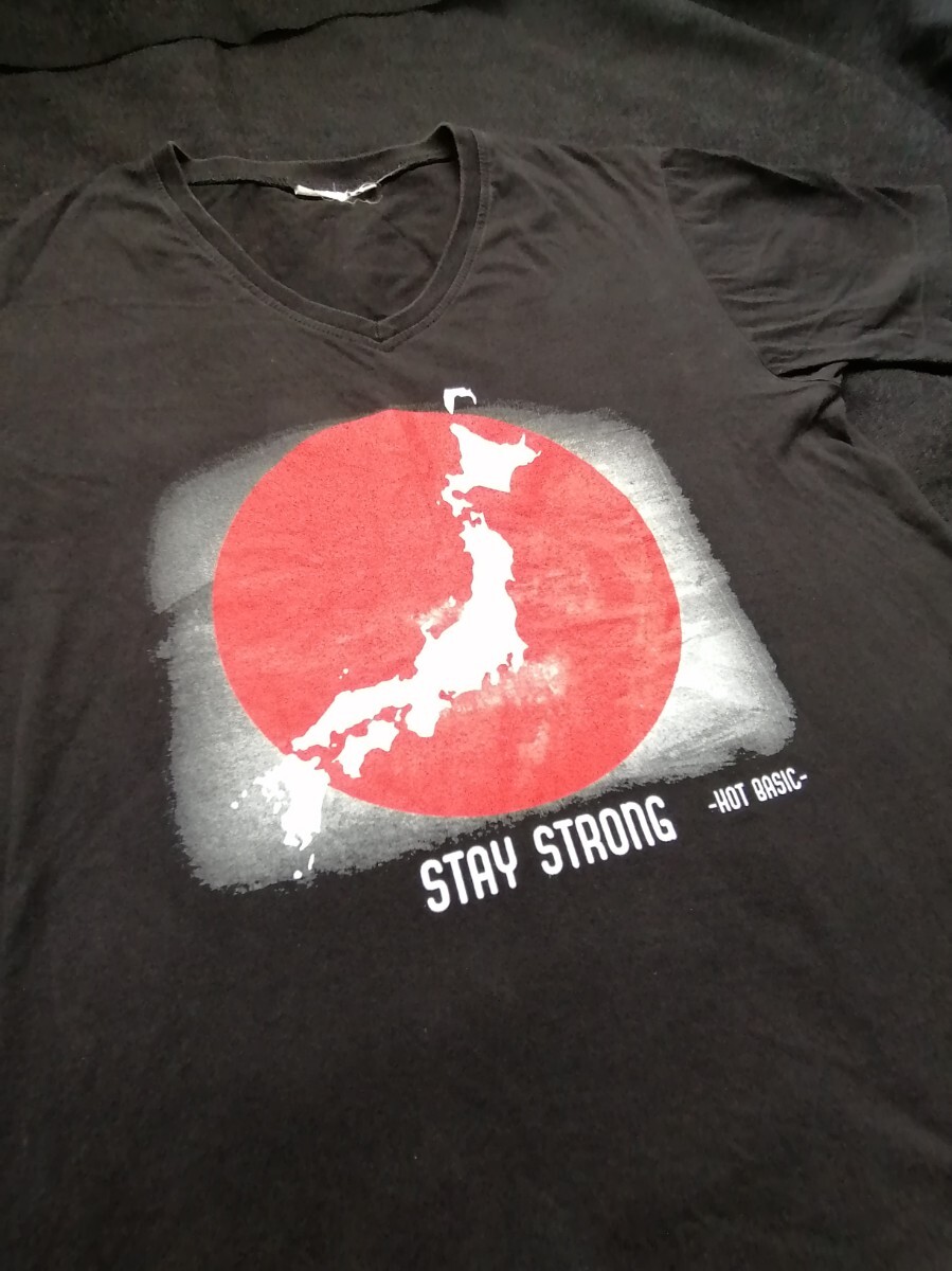 STAY STRONG 日本地図型のプリントでタグは取れています。