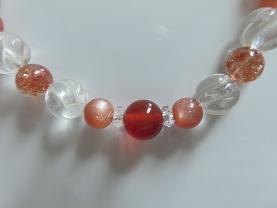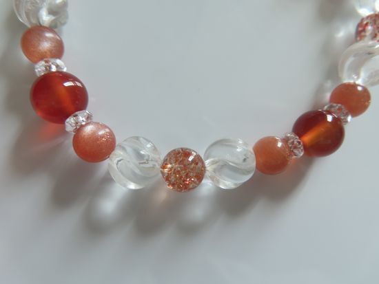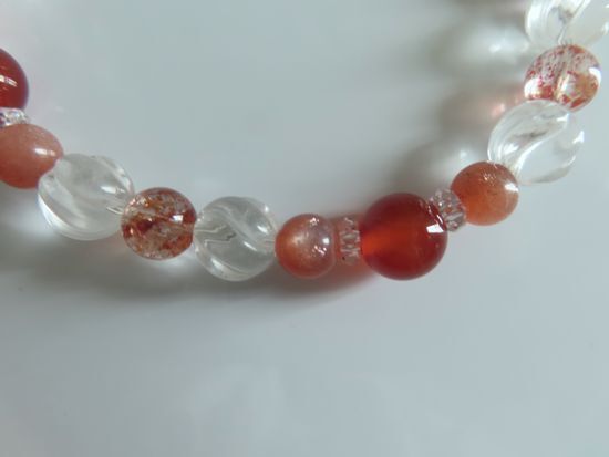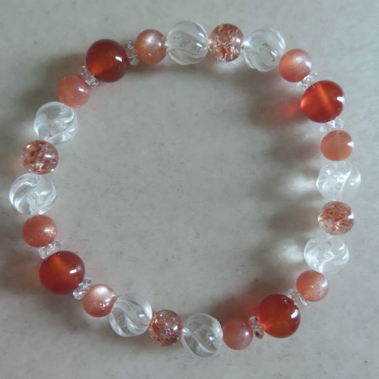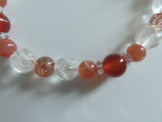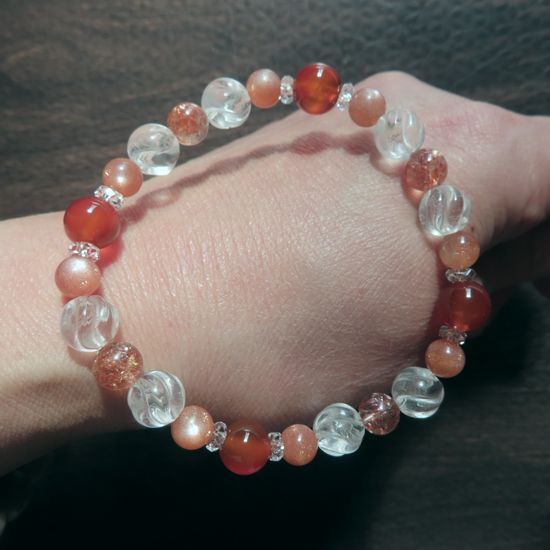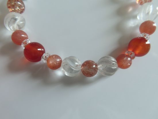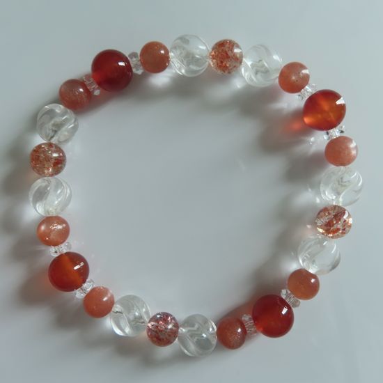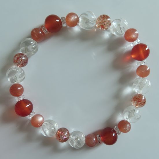 サンストーン、オレンジムーンストーン、カーネリアン、水晶のブレスレット | |||