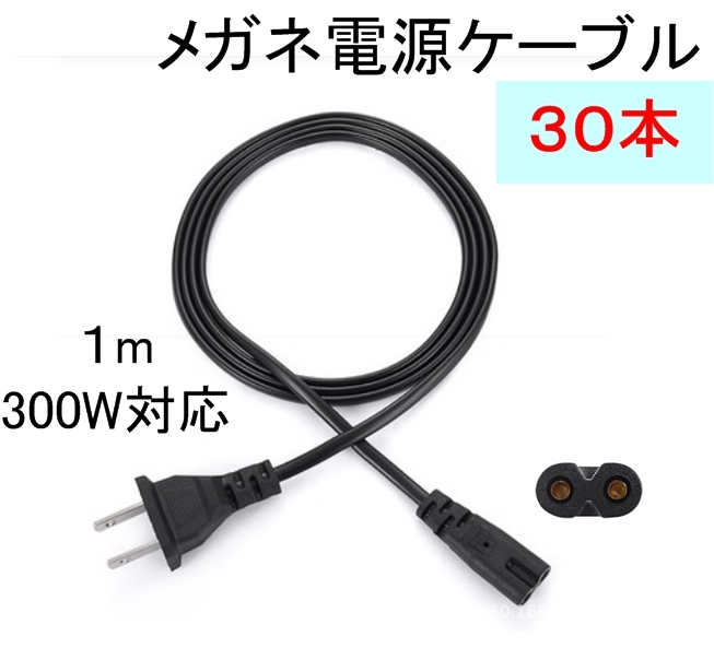 30本セット AC メガネ 型 電源 ケーブル コード 1メートル 1m(プレステ 8字 プリンター ドリキャス ブルーレイ DVD レコーダー 100cm)