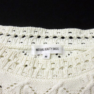 ナチュラルビューティーベーシック NATURAL BEAUTY BASIC カットソー ニット 透かし編み スカラップ コットン M 白 ホワイト レディース