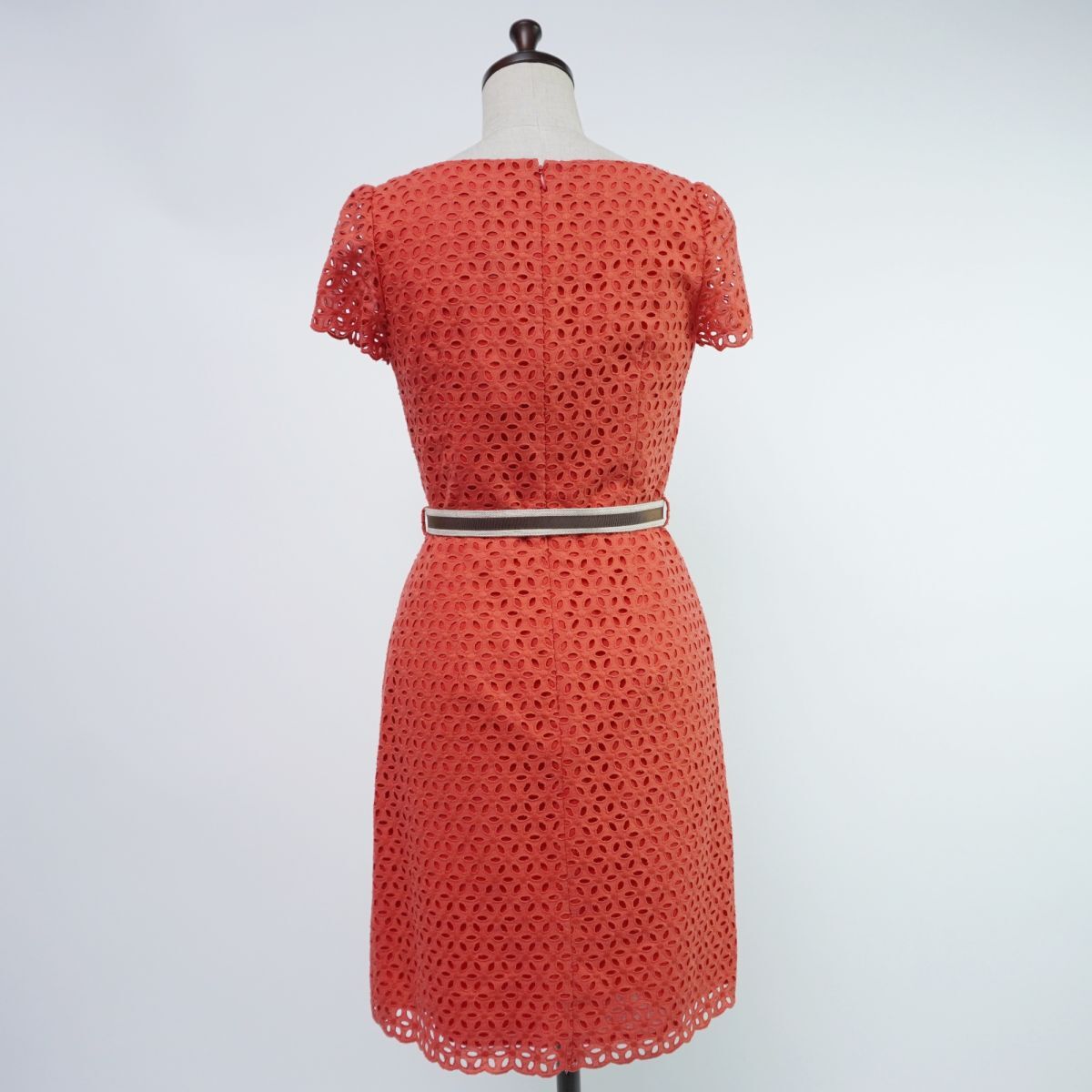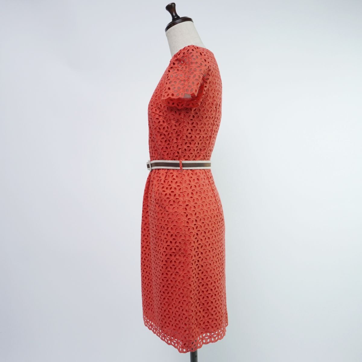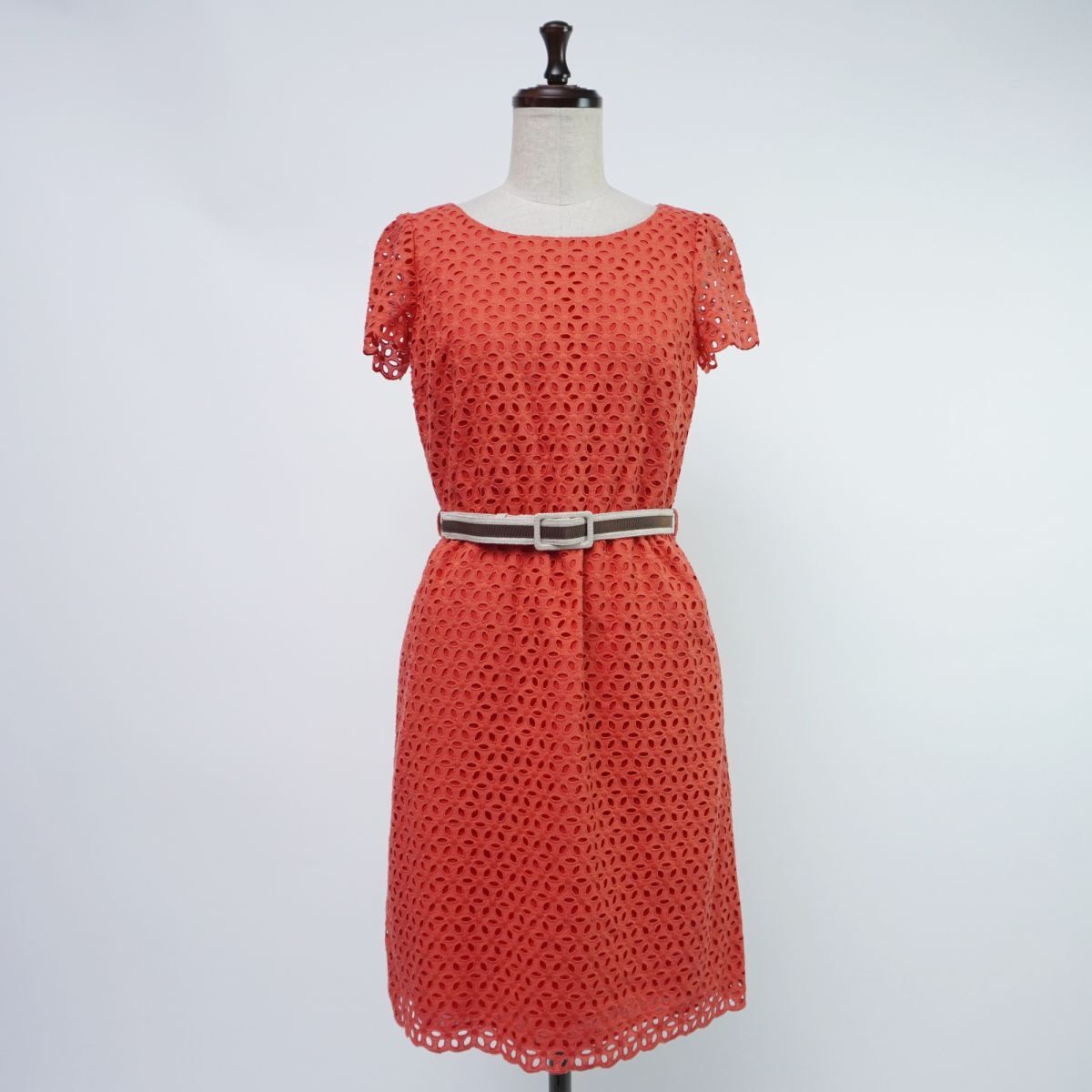新品未使用 JILLSTUART ジルスチュアート 総レース ベルト付き 半袖フレアワンピース ペチキャミ付き レディース 赤 サイズ1*TC186