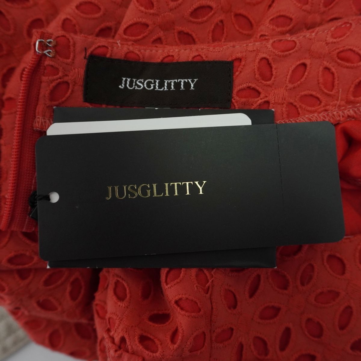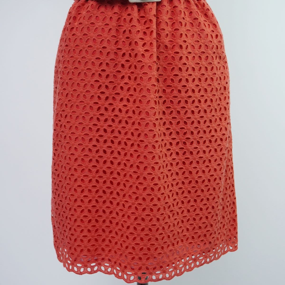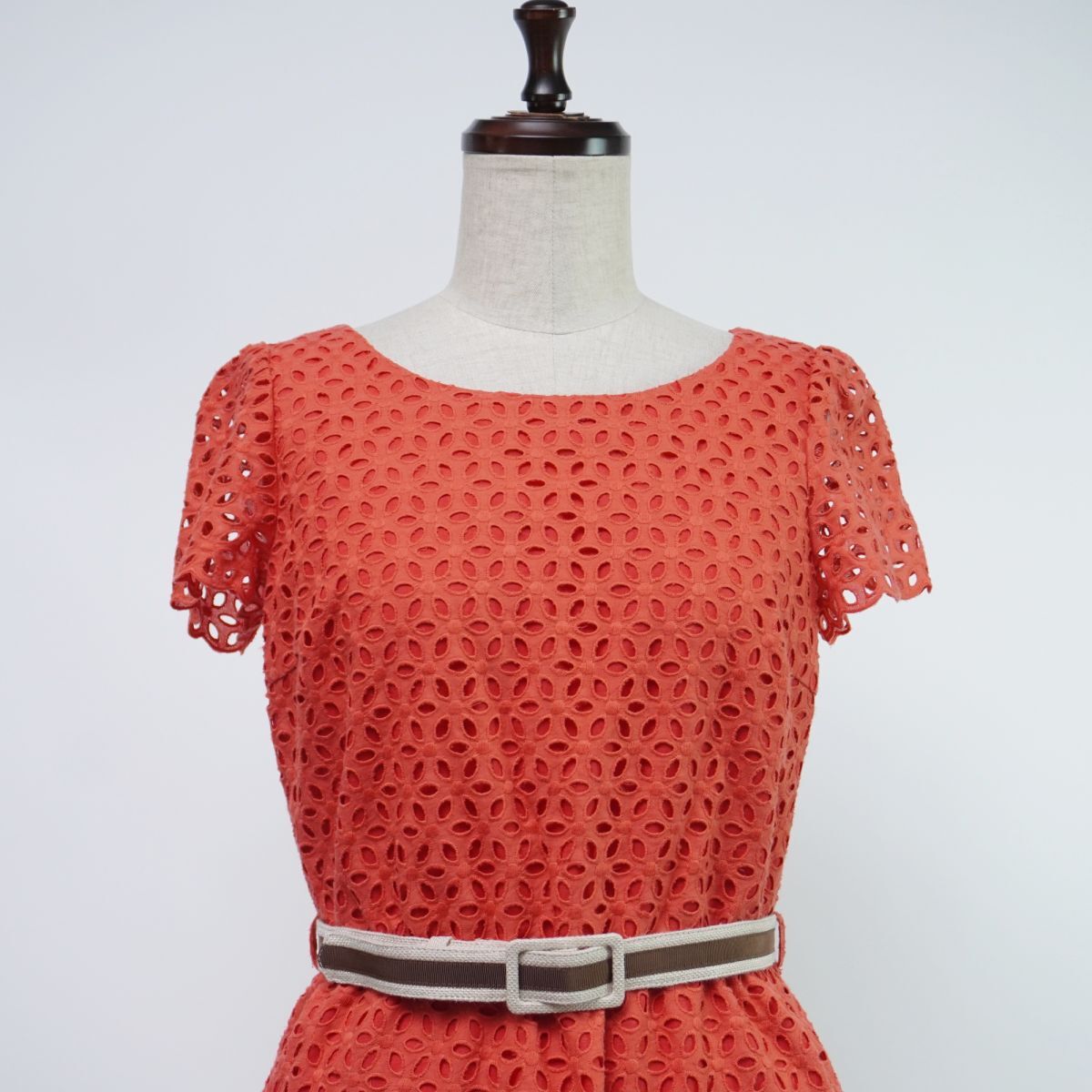 新品未使用 JILLSTUART ジルスチュアート 総レース ベルト付き 半袖フレアワンピース ペチキャミ付き レディース 赤 サイズ1*TC186