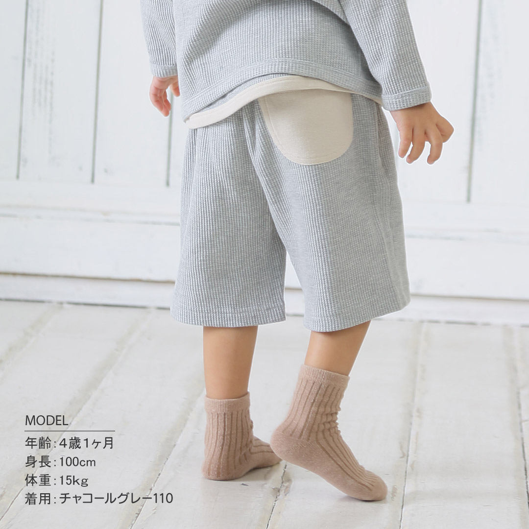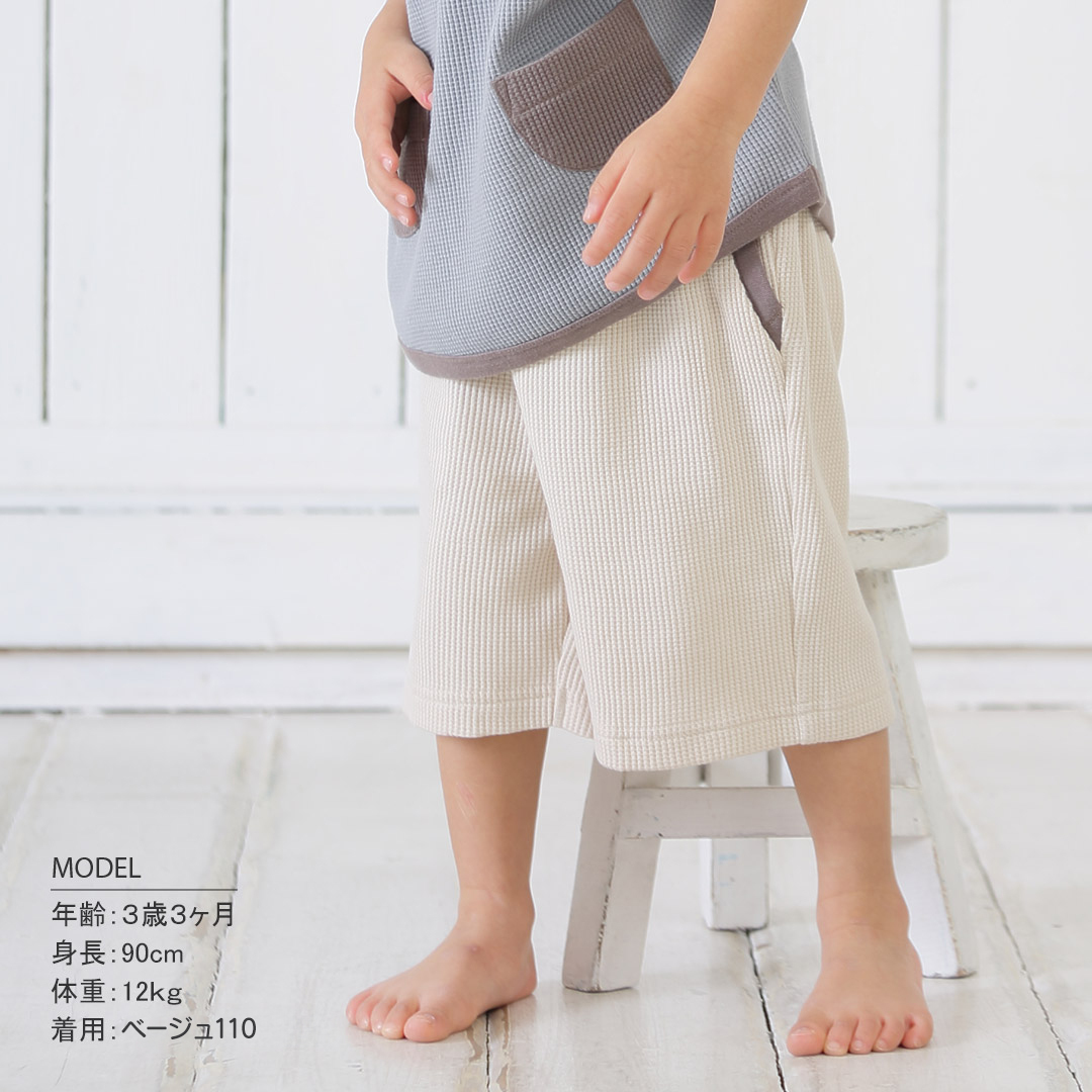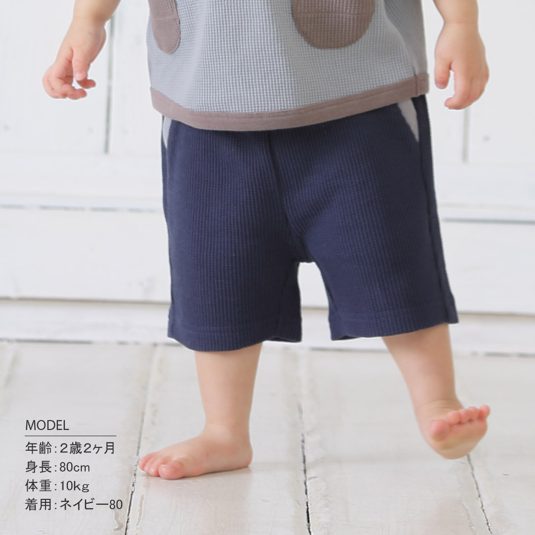 | 商品説明 | ・・後ろの丸みバイカラーポケットがかわいい♪ワッフル生地の5分丈パンツです。 ・サイドの本物のような飾りポケットがポイントとなって、ラフ過ぎずに、メリハリをつけたデザインになっています。 ・同シリーズのTシャツ、カーディガンとのセットアップもできて着こなし方は色々。 ・幅広いサイズ展開で兄弟リンクコーデもおススメです♪ |