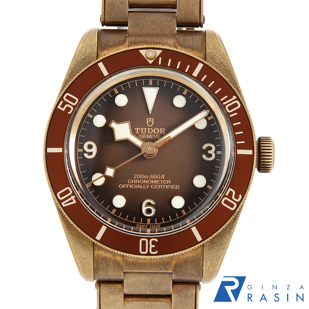 | モデル情報 | チューダーブティック限定のブラックベイ フィフティエイトが入荷致しました。ケースにブロンズを使用しているため経年による色の変化が出やすく、使い込むごとにエイジング効果を感じられるモデルです。ブロンズ製の新型クラスプには、ブレスレットの長さを5段階で調節可能なチューダー独自のT-fitアジャスティングシステムを採用。自社製Cal.MT5400搭載、パワーリザーブ約70時間。200M防水。 |