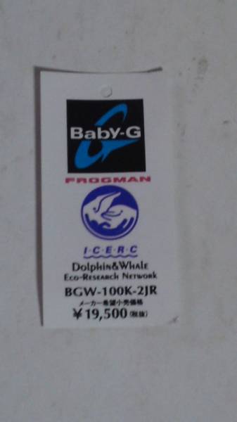 カシオG-SHOCK Baby-Gのプライスタグです。当時価格1万9500円。BGW-100K-2JR 商品の確認は画像で確認して下さい。なにぶん古い商品なのでそれなりにいたみがありますその為ノークレムで宜しくお願いします。古い商品なのでそれでもよければ入札して下さい。すみませんけどトラブル防止の為落札者様の評価が100以上ある方のみの入札で宜しくお願いします。(注意)評価の低い落札者様のトラブルが沢山ありますので入札はやめて下さい。(注意)