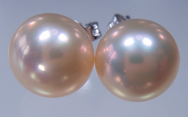 サイズピアス 真珠玉:9.0~9.5mm 形:正面からは真円ですが、横からは若干平べったい形です。