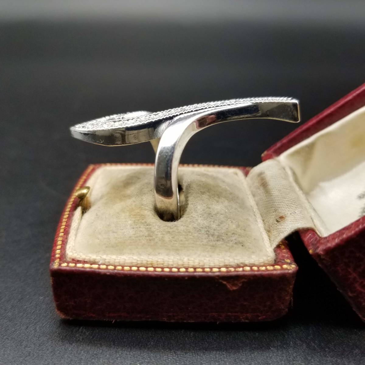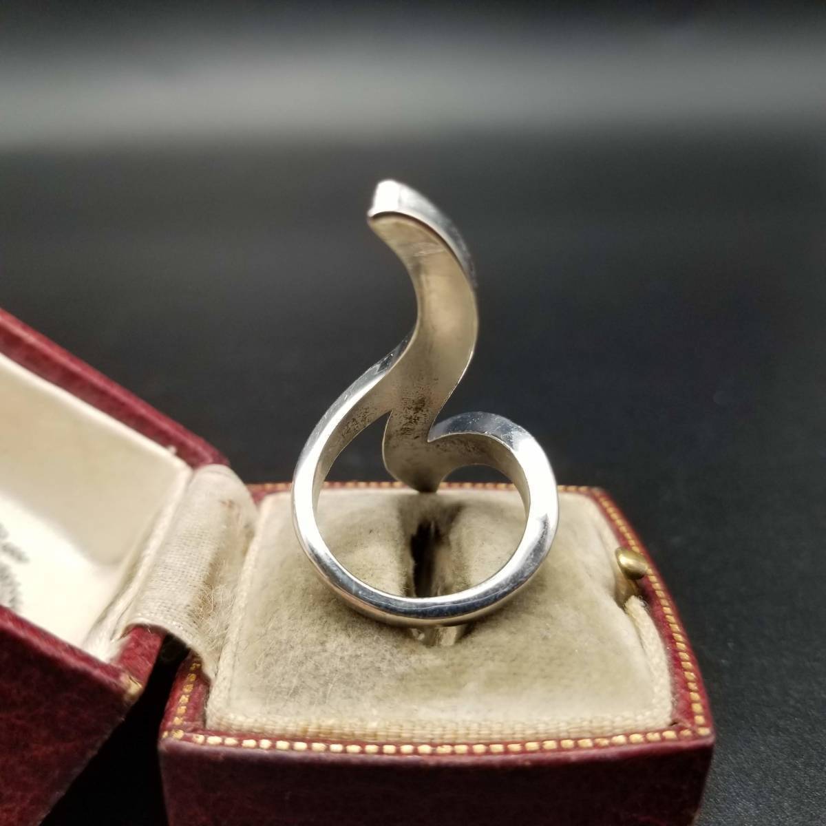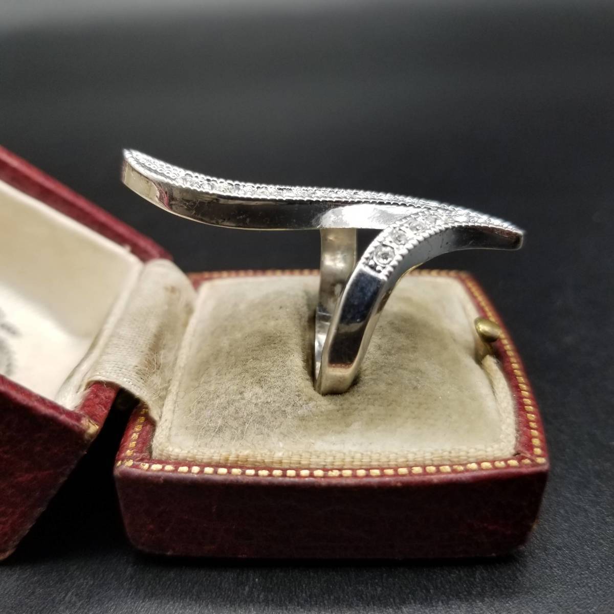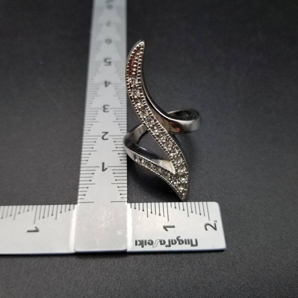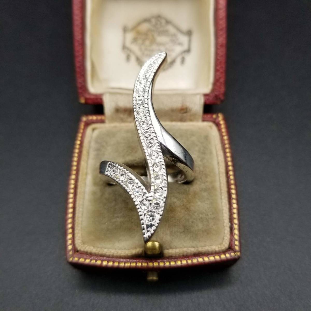 炎 ウェーブ ラインストーン ビッグシルエット ヴィンテージ リング シルバートーン 指輪 レトロ ステートメントジュエリー 華やか AMD