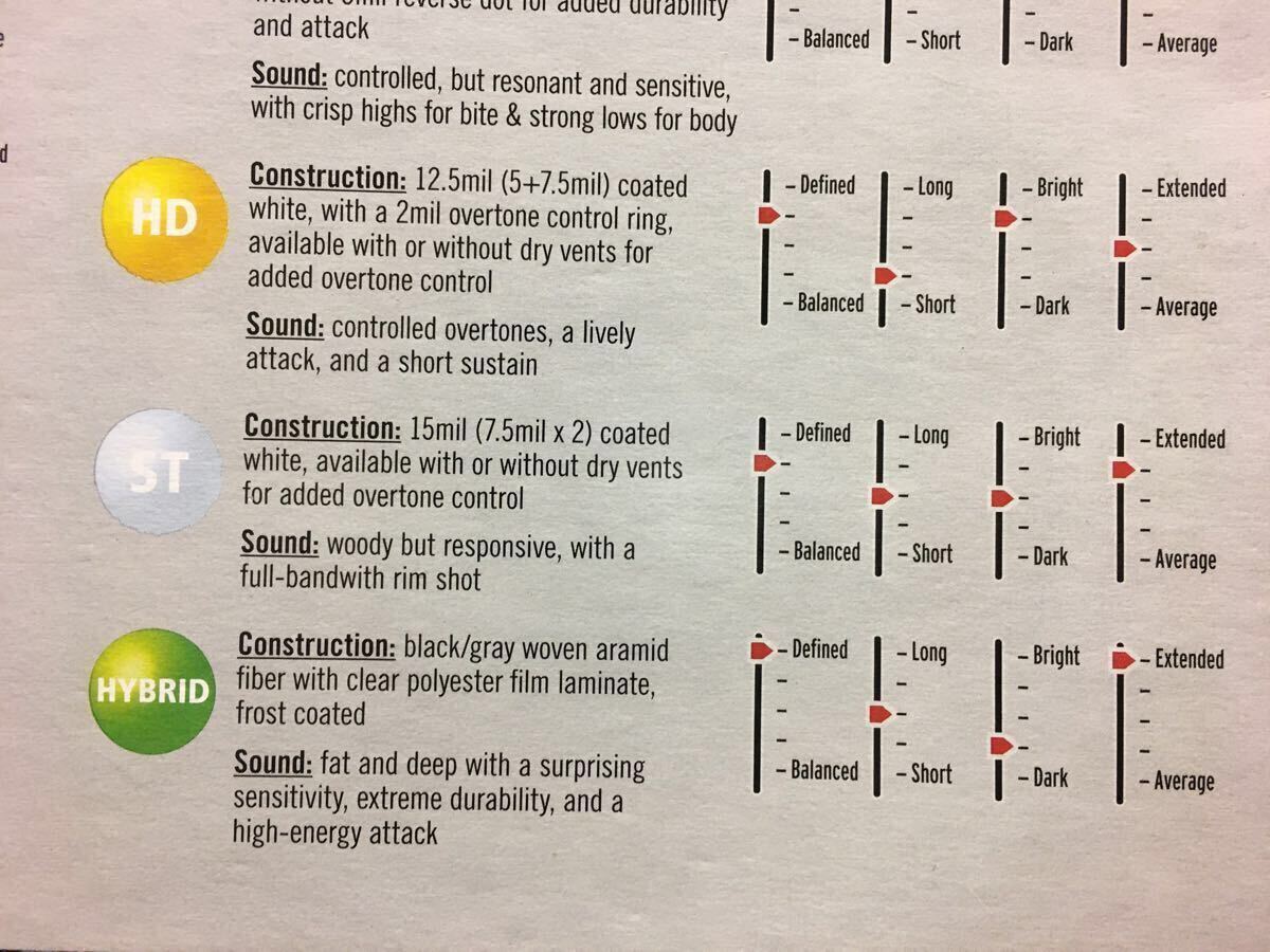 エバンスのハイブリッドマーチングスネアヘッドです。