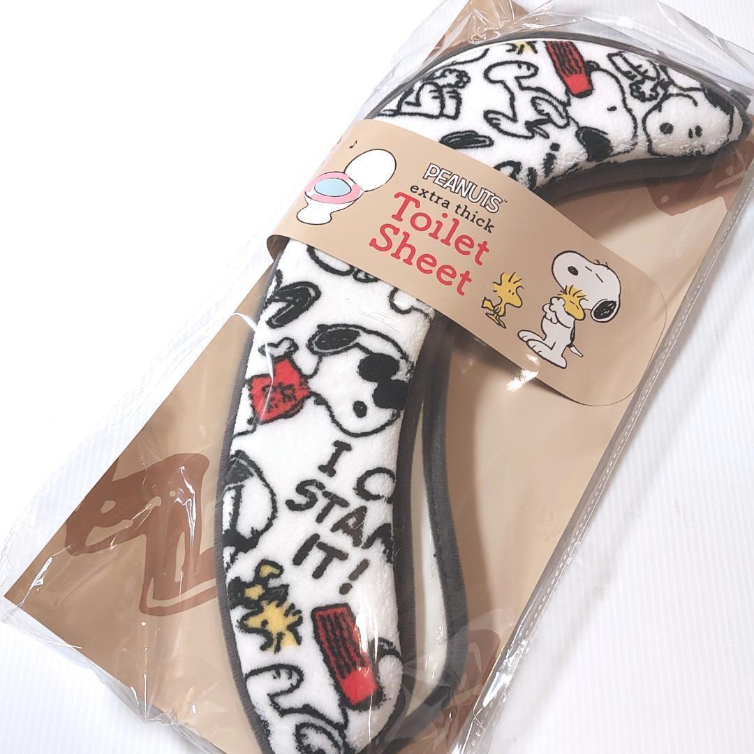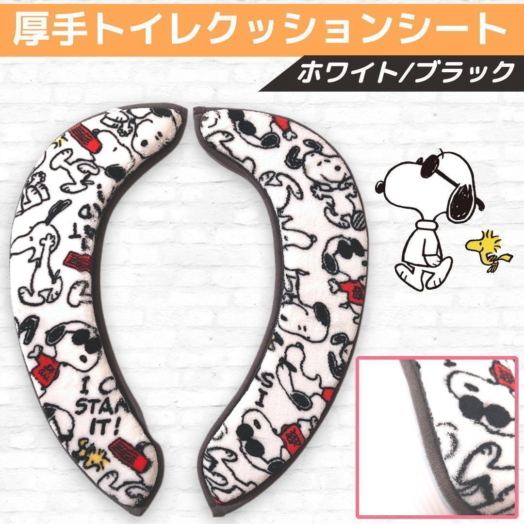 新品未使用 スヌーピー トイレ 便座シート 極厚 厚手 ふんわり生地 丸洗い 節電 ② ホワイト ブラック