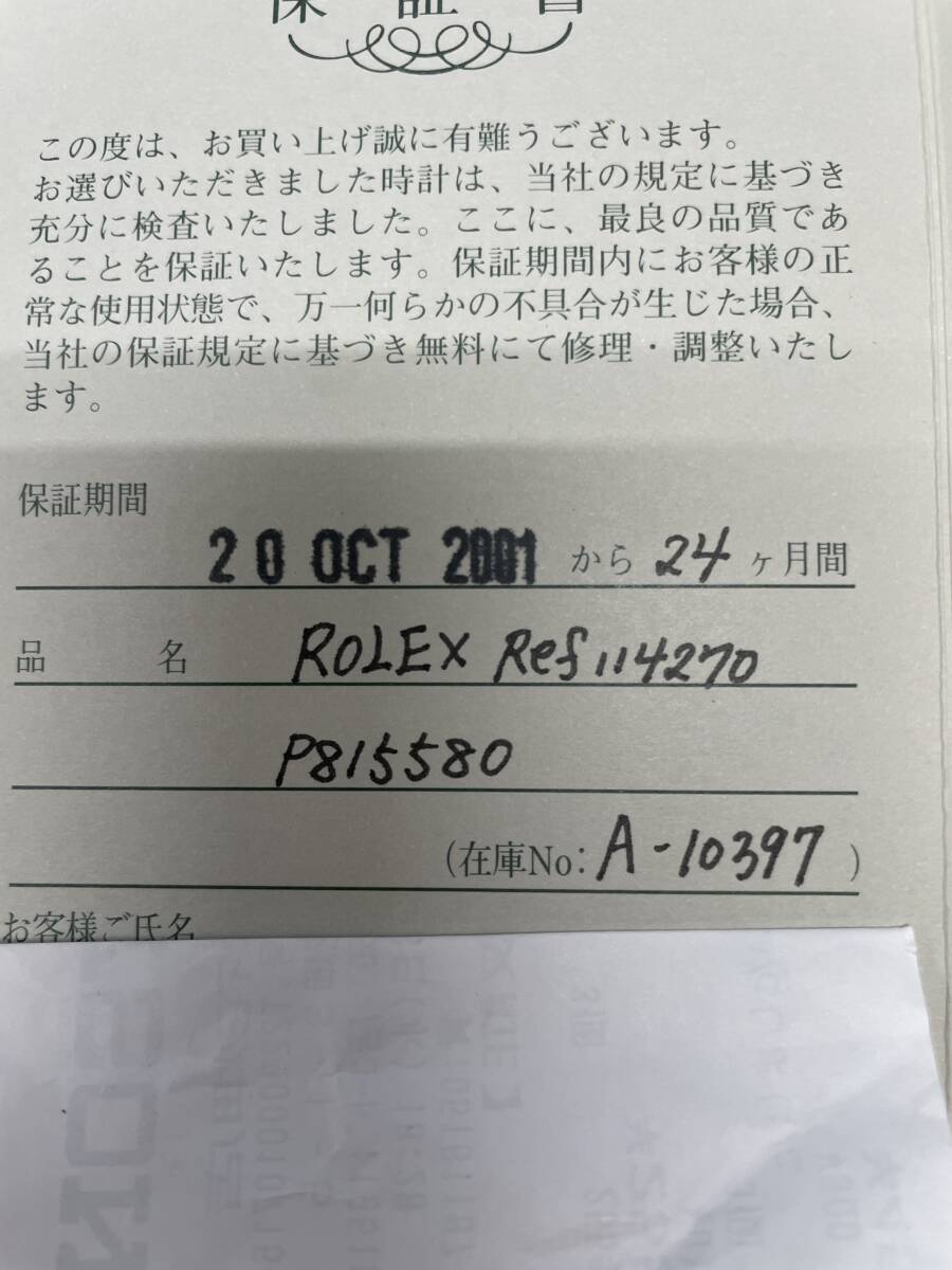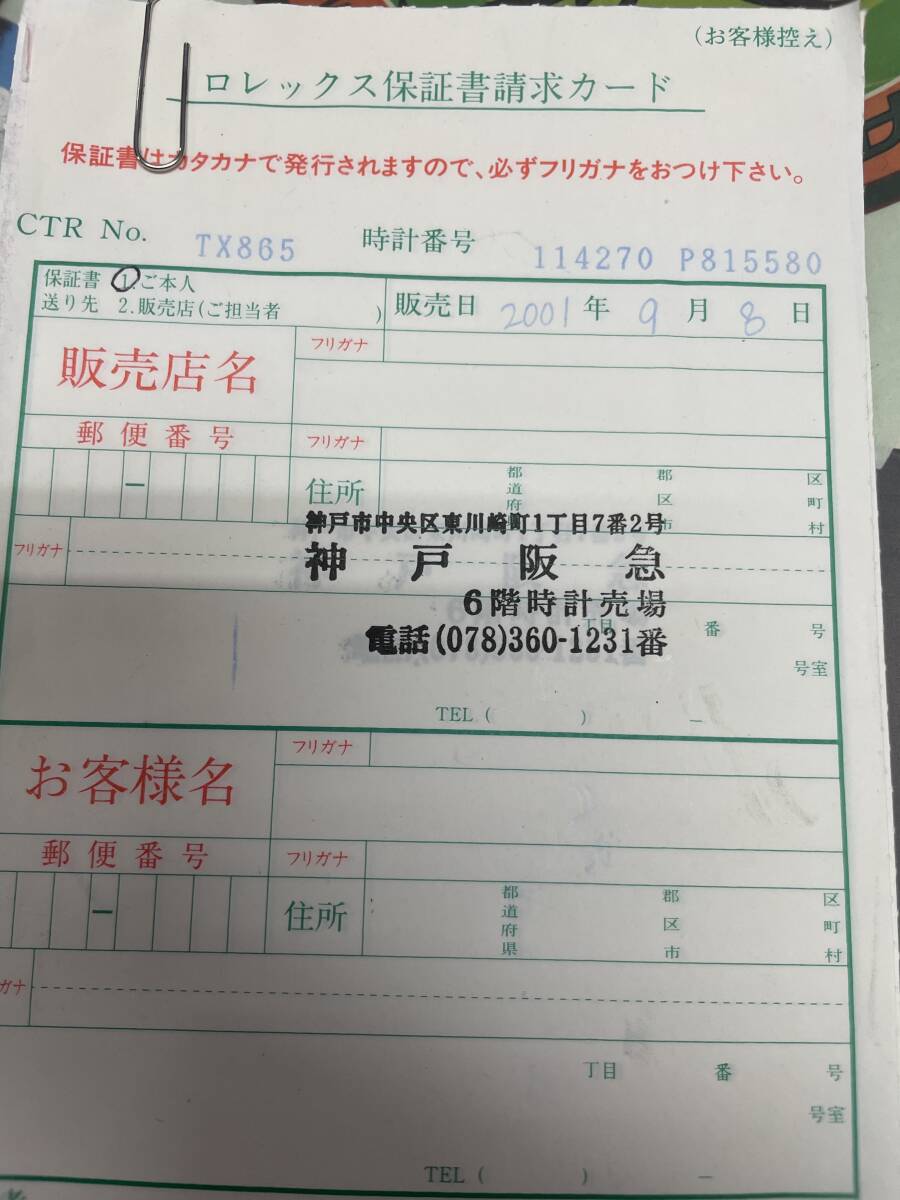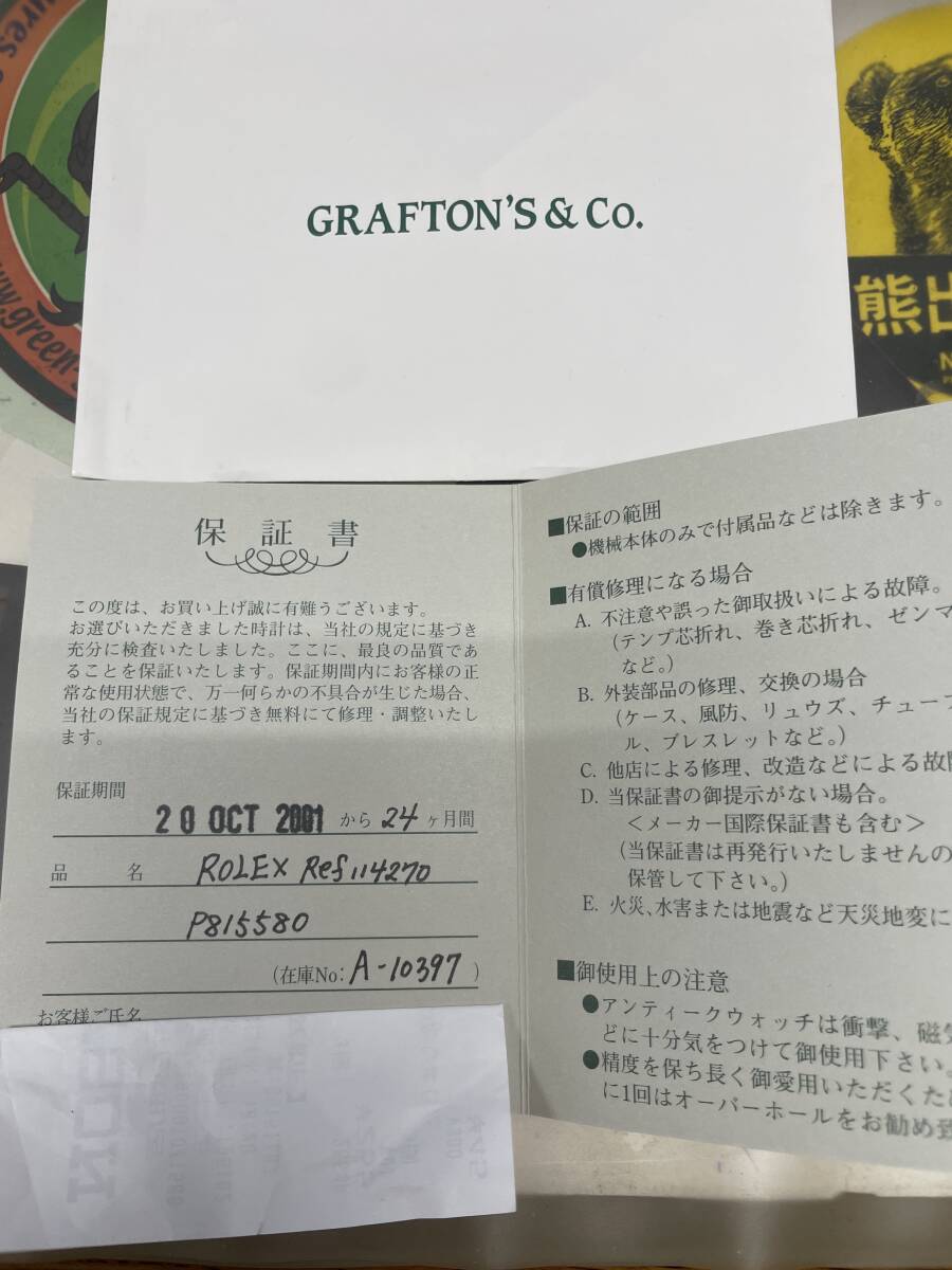 114270 グラフトン保証書とロレックス保証書請求カードのセットになります。