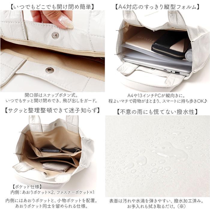 | 商品説明 | ・・【いつものコーデにちょっぴり遊び心】 ・おしゃれを楽しめる☆「cache cache カシュカシュ タテ型ショッパー」。 ・【上品なツヤ感がコーデのアクセント】 ・表面にソフトエナメル合皮を使用した、スタイリッシュな仕上がり。こなれ感をプラス。 ・【軽やかな使い心地でストレスフリー】 ・体に負担をかけない軽量設計。サッと持ち出せて、移動の多い日もラクラク。 ・【いつでもどこでも開け閉め簡単】 ・開口部はスナップボタン式。いつでもサッと開け閉めでき、飛び出しをガード。 ・【A4対応のすっきり縦型フォルム】 ・A4や13インチPCが縦向きに。程よいマチで荷物がまとまり、スマートに持ち歩きOK♪ ・【サクッと整理整頓できて迷子知らず】 ・内側にはあおりポケットと、小物ポケットを配置。あおりポケット同士を留められる仕様。 ・【不意の雨にも慌てない撥水性】 ・表面は汚れや水滴を弾きやすい、撥水加工済み。お手入れも拭き取るだけ。 ・(※)完全防水ではありません。 ・【色んなシーンでヘビロテ間違いなし】 ・メインもサブ使いもできる、万能アイテム。モノトーンや差し色からお気に入りをチョイス! ・【cachecache】 ・フランス語で「かくれんぼ」の意。ガーリッシュとちょっと背伸びをした大人っぽさをミックス。 ・【ポケット仕様】 ・内側:あおりポケット×2、ファスナーポケット×1 |
