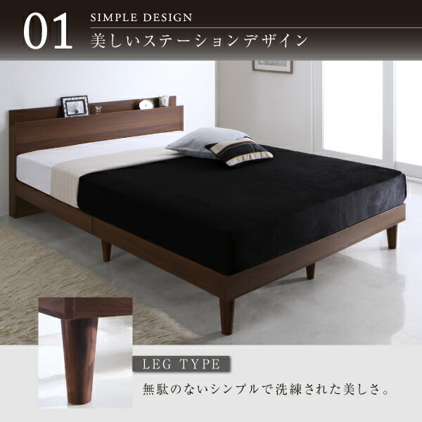 棚・コンセント付きデザインすのこベッド マルチラススーパースプリングマットレス付き セミダブル