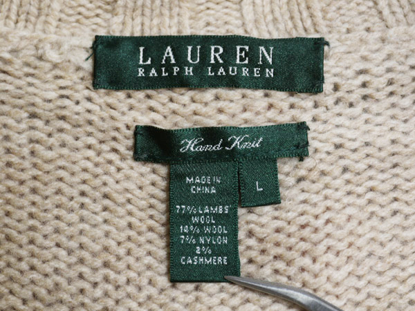 | 商品名 | 手編み 90s LAUREN ラルフローレン フルジップ ニット セーター レディース L / オールド ラム ウール カシミヤ カーディガン ジャケット |
